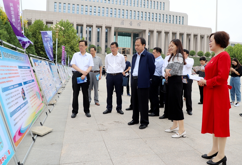 活动现场,曹新博等领导同志和社会各界人士一起在宣传条幅上签名,一边观看宣传展板,一边交流探讨,并听取了相关单位负责人关于网络安全工作的汇报。