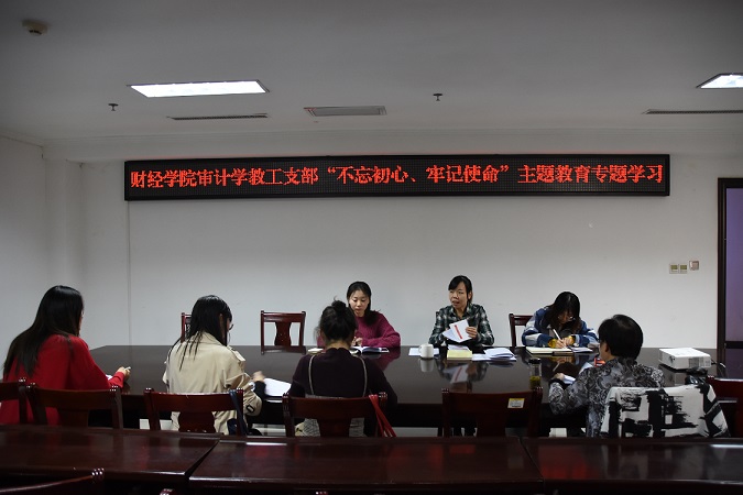 为进一步深入贯彻落实习近平新时代中国特色社会主义思想,增强党员宗旨意识,加强理想信念教育,推进“不忘初心,牢记使命”主题教育的不断深化,财经学院审计学教工党支部于10月29日在行政楼821开展了“不忘初心、牢记使命”主题教育专题党课活动。会议由审计学教工党支部书记史雅洁主持,审计学支部党员教师参会。