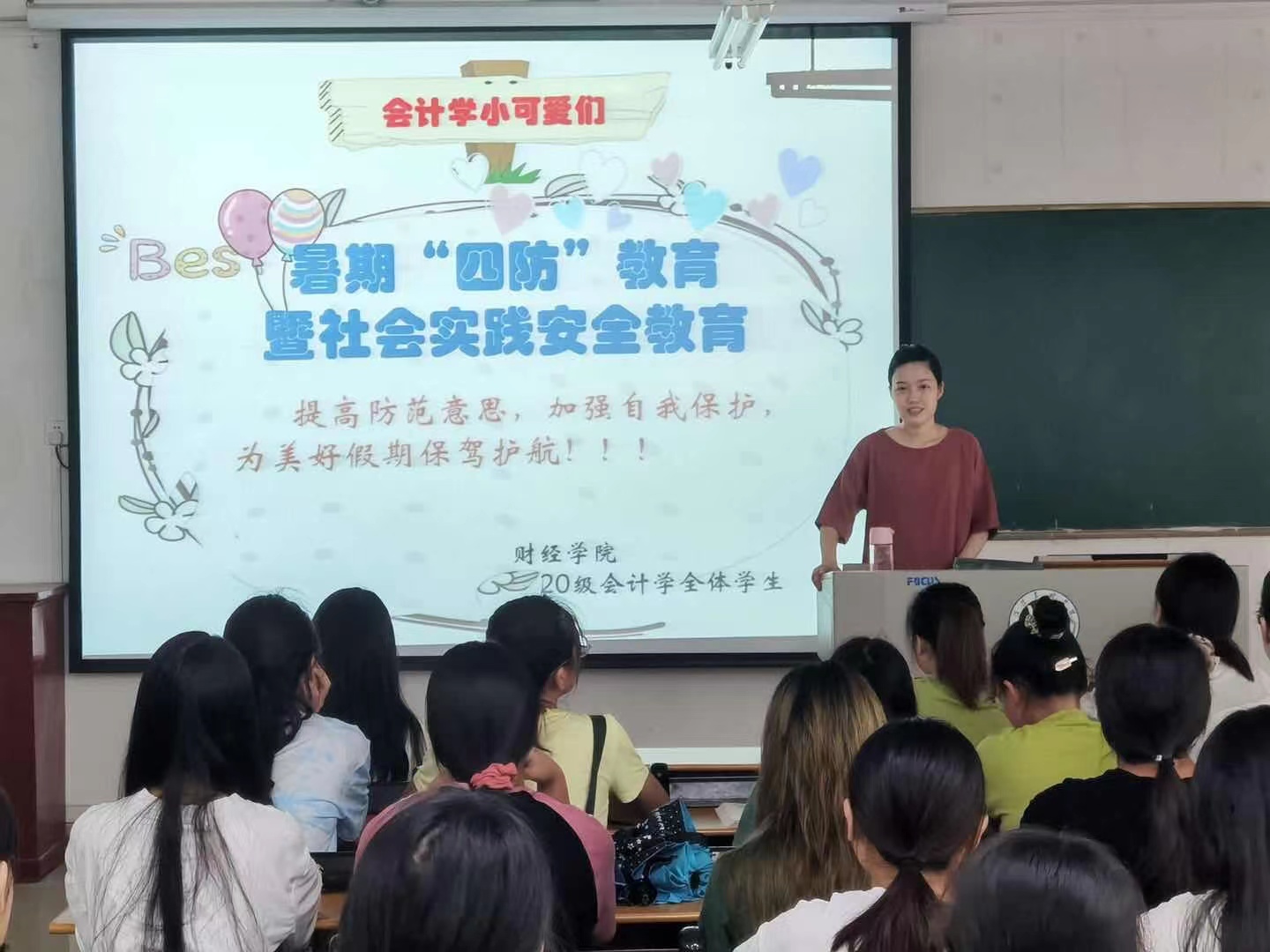 为进一步加强学生暑期安全教育,确保学生生命财产安全,部署社会实践活动安排,激发学生的责任意识和使命担当,近日来财经学院各班组织开展“四防”教育暨暑期社会实践安全教育主题班会。