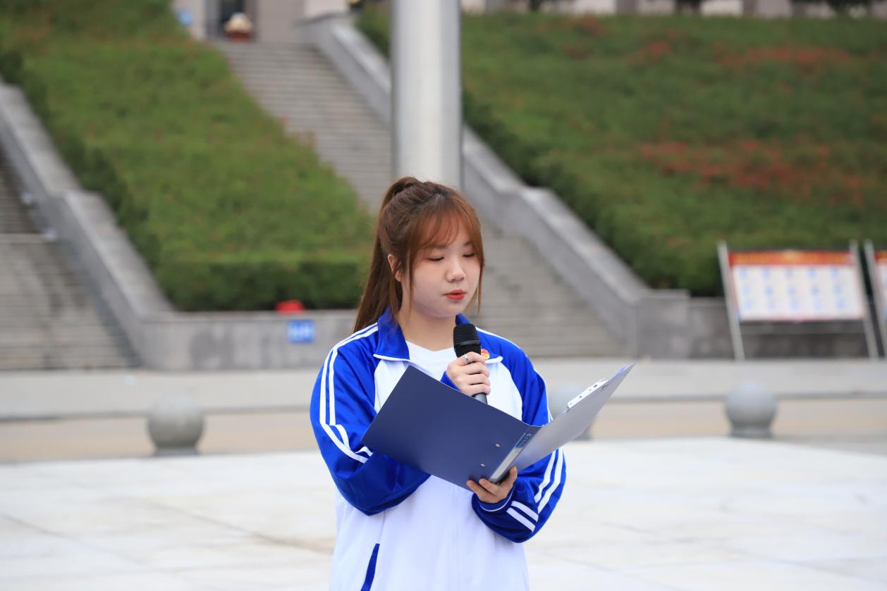 新生代表财务管理21-3班郑雨露同学在国旗下进行演讲。她表示作为当代青年要树立与这个时代主题同心同向的理想信念,勇于担当时代赋予的历史责任,在激情奋斗中绽放青春光芒。身为财经学子,要恪守“志向立高远,学问做精细”的校训,秉承“明礼崇德,知行合一”的校风,牢记“慎思笃行,学以致用”的学风,不负老师和父母的殷切希望,拿出坚定的信心,顽强的毅力,无畏的勇气,迎接丰富多彩的大学生活,做有担当的时代青年。