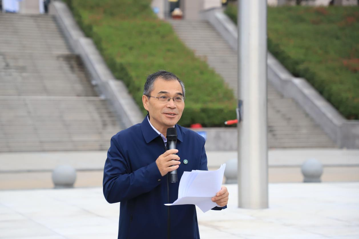 金秋十月,天高气爽,在这个充满收获、满载希冀的季节里迎来了崭新的开始。为欢迎新生,勉励新生,10月11日,财经学院在汝宁广场举行“把灾难当教材 与祖国共成长,欢迎新生,勉励新生”主题升旗仪式。校党委副书记王庆兵特邀参加了此次升旗仪式并作重要发言,校团委、学生处、学院班子成员、辅导员老师及2021级全体新生参加升旗仪式。升旗仪式由财经学院党总支书记朱长明主持。