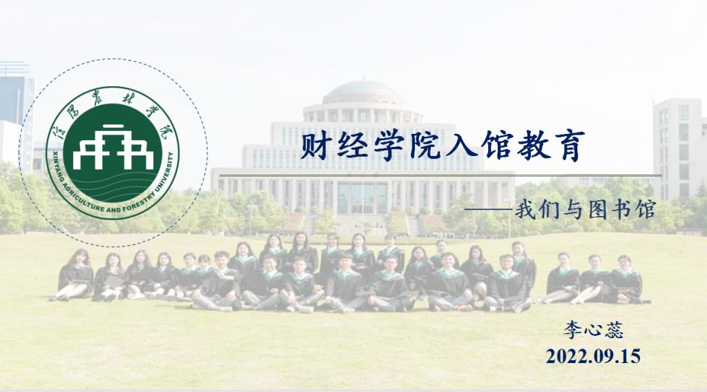9月15日,财经学院特邀图书馆李心蕊老师对2022级新生做了题为“我们与图书馆”的入馆教育。