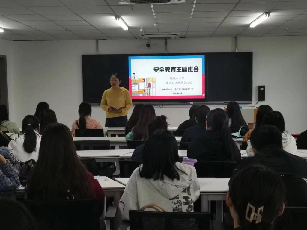 为增强同学们的安全防范意识,提高同学们识骗、防骗能力,保障同学们健康安全,推动平安校园建设,2023年5月9日-12日,财经学院各班辅导员组织学生召开安全教育主题班会。