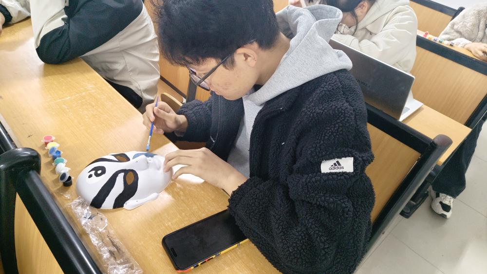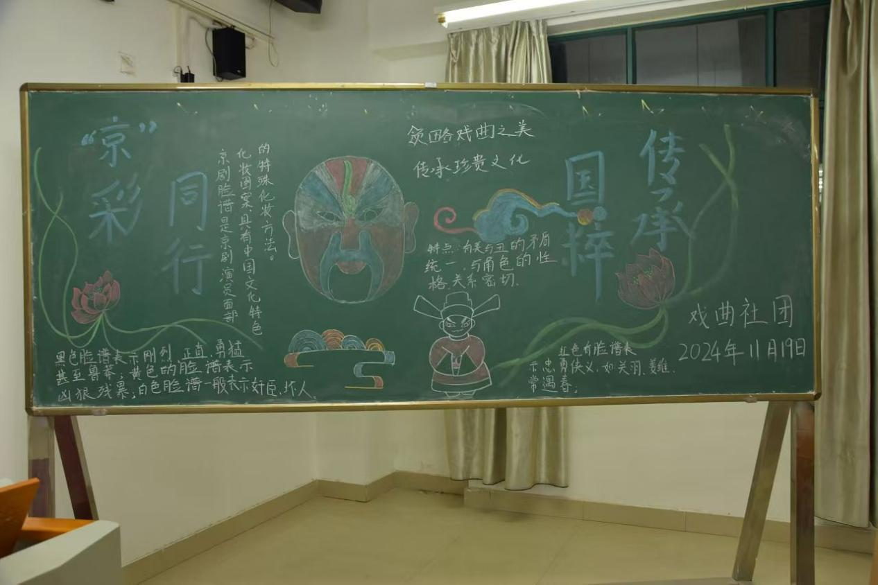 活动伊始,戏曲社团成员为同学们讲解了京剧脸谱的演变历史、分析、特点等知识。戏曲社团成员带领同学们一起观看经典的京剧片段,感受国粹的魅力。活动最后,戏曲社团成员向同学们分发脸谱材料,让同学们自由绘制脸谱,大家全神贯注地投入到脸谱的创作中,谨慎地动笔勾勒、填色,创作心中独特的艺术形象。