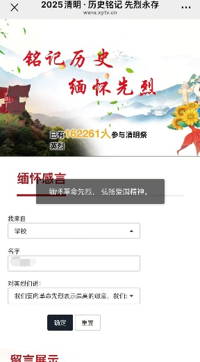 活动期间,管理学院依托信阳文明网平台,组织同学们积极参加“网上祭英烈”活动,通过鞠躬献花、寄语留言等线上祭扫方式,向英烈们表达深切的缅怀和崇高的敬意。管理学子们在云端寄托哀思,用指尖传递敬意。这种“云端祭扫”形式既传承了清明慎终追远的传统内涵,又赋予节日“低碳环保”的时代特色,实现了传统文化与现代文明的有机融合,也让清明节的庄重与温情得以延续。