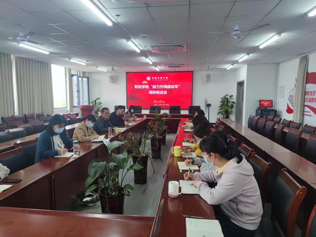 3月15日下午,党委副书记王庆兵到财经学院调研指导“能力作风建设年”活动,财经学院领导班子成员和科级干部参会。
