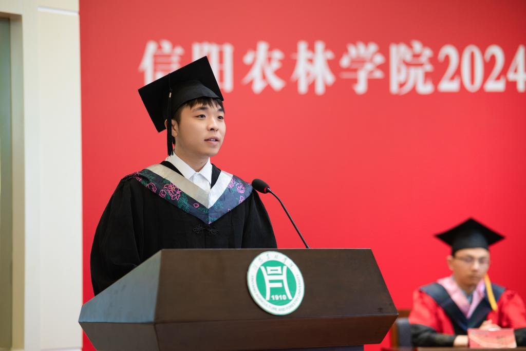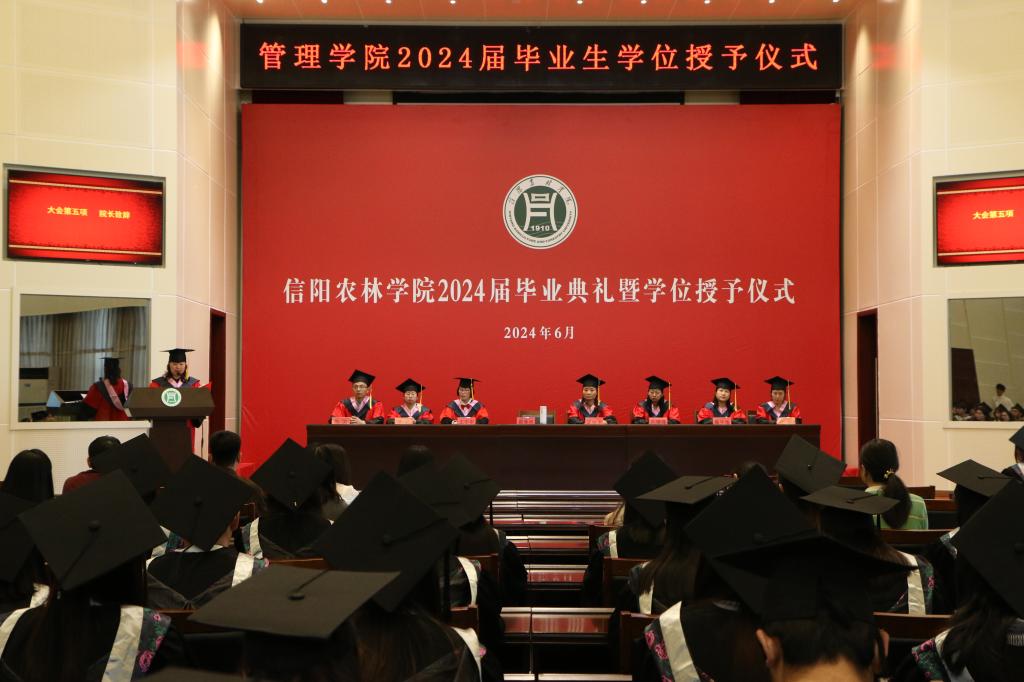 毕业典礼暨学位授予仪式在雄厚庄严的国歌声中正式开始。管理学院学位评定分委员会副主席、管理学院副院长王宇平副教授宣读2024届毕业生学位授予决定及授予名单。毕业生代表田润楠、在校生代表黄晓雪先后上台作了发言。