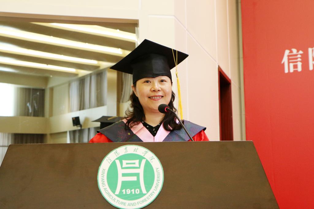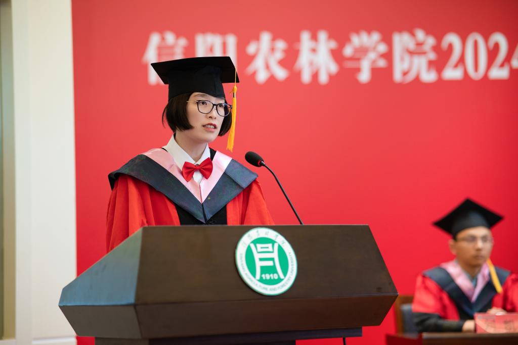 随后,院长郭春林发表了热情洋溢的致辞,她代表学院向462名毕业生表示衷心地祝贺!她说,作为2024届毕业生,意义非凡。大家一道见证了学校本科教学工作合格评估,一起走过了极不平凡的三年抗疫之路,携手经受住了一场艰苦卓绝的大考,在这非凡的日子里,同学们始终与学校同风雨、共进退,在风雨中历练、在奋斗中成长、在拼搏中闪光。临别之际、扬帆之时,作为师长、家人,站在同学们“诗和远方”的原点,她对毕业生提出了三点期待和嘱托:一是清晰确立自我人生目标。在谦虚谨慎的学习中不断进步,在勤奋不懈的工作中日益精进,一步一个脚印,稳扎稳打,用行动去证明自己。二是勇于直面挑战和失败。学会直面人生道路上各种挑战和困难,始终保持“不气馁、不抱怨、不放弃”的乐观心态,坚持不懈,勇毅笃行。三是用坚持坚守去结出丰硕果实。在未来的道路上,不断学习,不断进步,成为社会的栋梁之才。