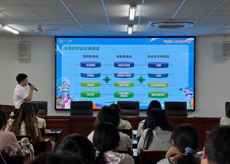 活动伊始,黄淮以企业宣传片开场,详细介绍了企业的发展历程、产业布局、企业文化以及人才培养体系,系统阐述了公司在国内外的业务拓展情况和未来战略规划。最后,着重解读了本次招聘岗位的职责要求、薪资待遇以及职业晋升路径。