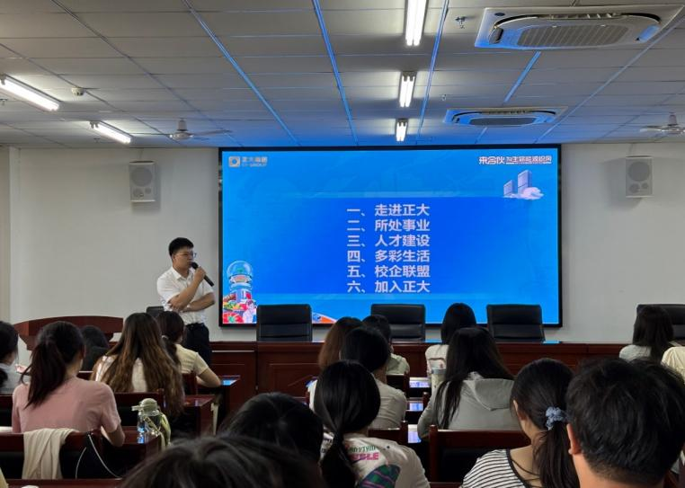 为搭建人才交流与合作的优质平台,助力毕业生高质量就业,管理学院于5月29日在双创楼408会议室携手正大集团举办校园招聘宣讲会。此次宣讲会由正大集团招聘经理黄淮主讲,学院有就业意向的2025届毕业生参加此次校园招聘宣讲会。