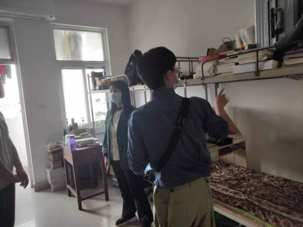 为提高同学们的宿舍安全防范意识,营造温馨和谐的育人氛围。财经学院于2021年5月18日在党总支副书记王艳平书记和专职辅导员吴昊老师的带领下,突击检查学生宿舍安全卫生情况。