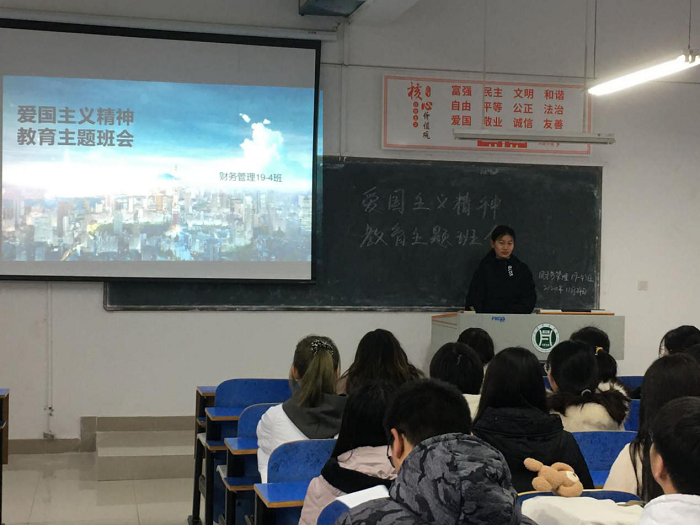 为了增强同学们的爱国情感,树立坚定的爱国主义理想信念,进一步规范文明行为,提高文明素质,12月28日,财经学院文明示范班——财务管理2019-4班学生开展了爱国主义精神教育主题班会。