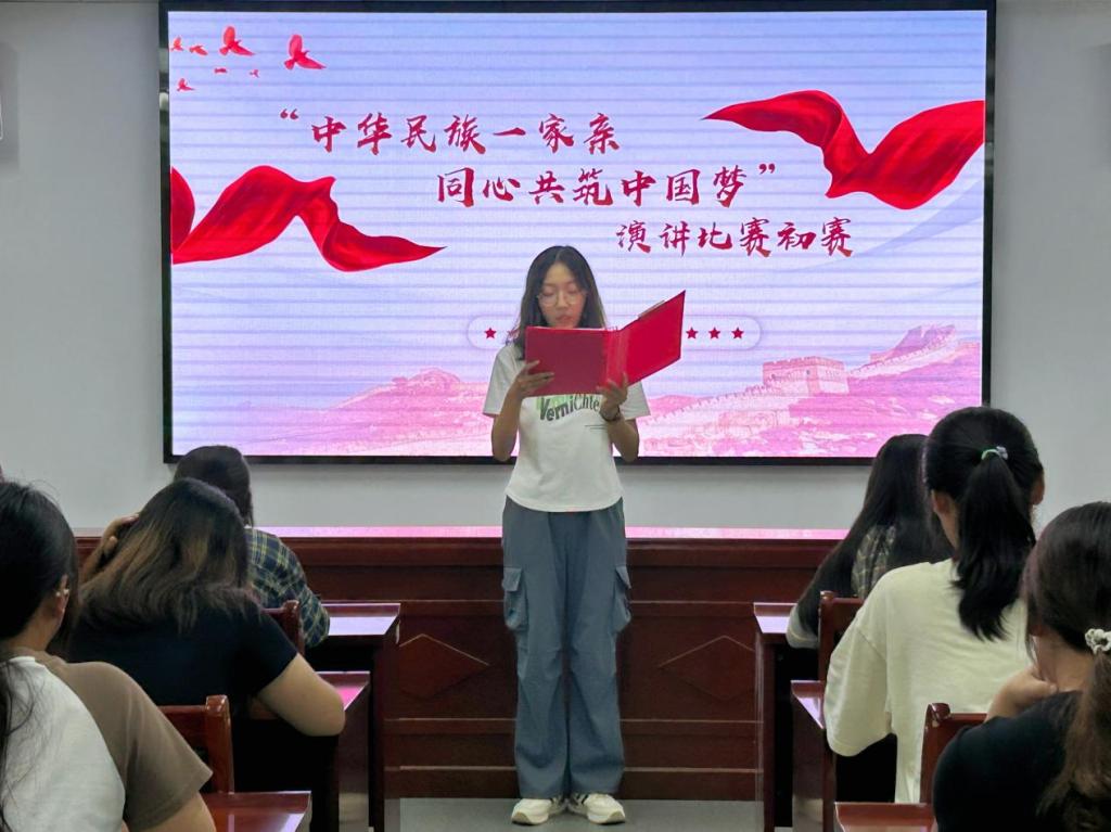点点星斗,点亮无垠苍穹;五十六个民族,福籽同心爱中华。为深入贯彻落实党的二十大精神,全面贯彻党的民族政策,弘扬民族团结进步主旋律,引导学生始终铸牢中华民族共同体意识,管理学院于9月19日晚在双创楼408会议室开展“中华民族一家亲 同心共筑中国梦”演讲比赛初赛。