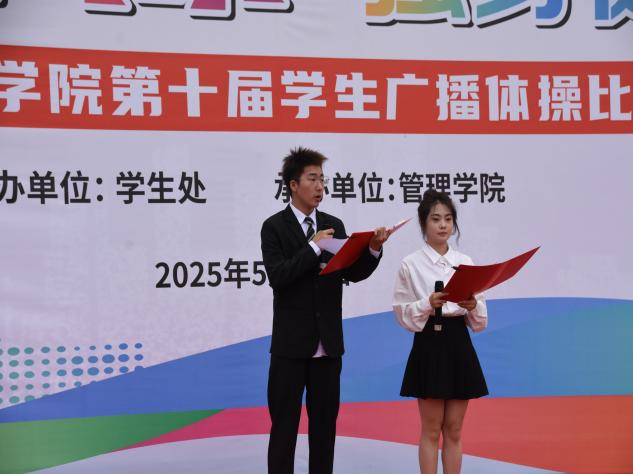 5月13日,由学生处主办,管理学院承办的校第十届学生广播体操比赛在新操场举行。出席本次大赛的嘉宾分别是党委学工部部长、学生处处长靳潢、体育学院党委书记孙莉琴、管理学院党委书记王艳平