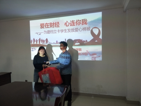 在爱心棉被的发放过程中,财经学院资助专员毛帅老师询问了同学们的学习情况以及生活状况,告诫同学们要自觉培养勤奋好学的精神,努力做一名成绩优秀、品行端正的新时代大学生,毕业后更好地为社会服务,承担社会责任。同学们纷纷表示接下来会努力学习,用优异的学习成绩、过硬的专业技能回馈父母的养育、学校的培育,用实际行动实现自己的人生理想。