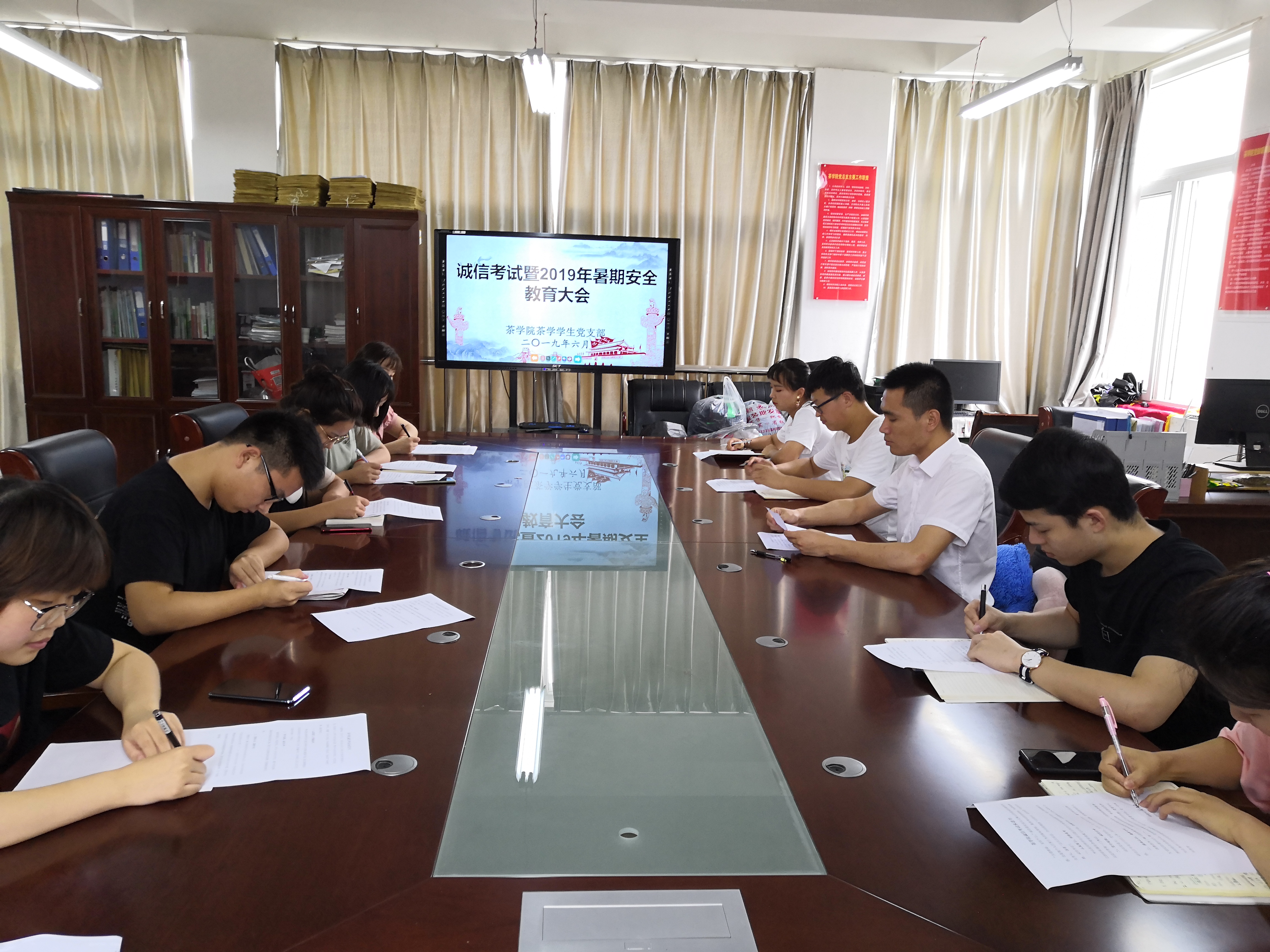 为了响应学校号召,加强学风建设,严肃考风考纪,提升党员学生安全意识,发挥学生党员的模范带头作用。6月18日中午,茶学院茶学学生党支部在2C501召开党员诚信考试暨暑期安全教育会,支部全体党员参加会议,会议由支部书记王子浩主持。