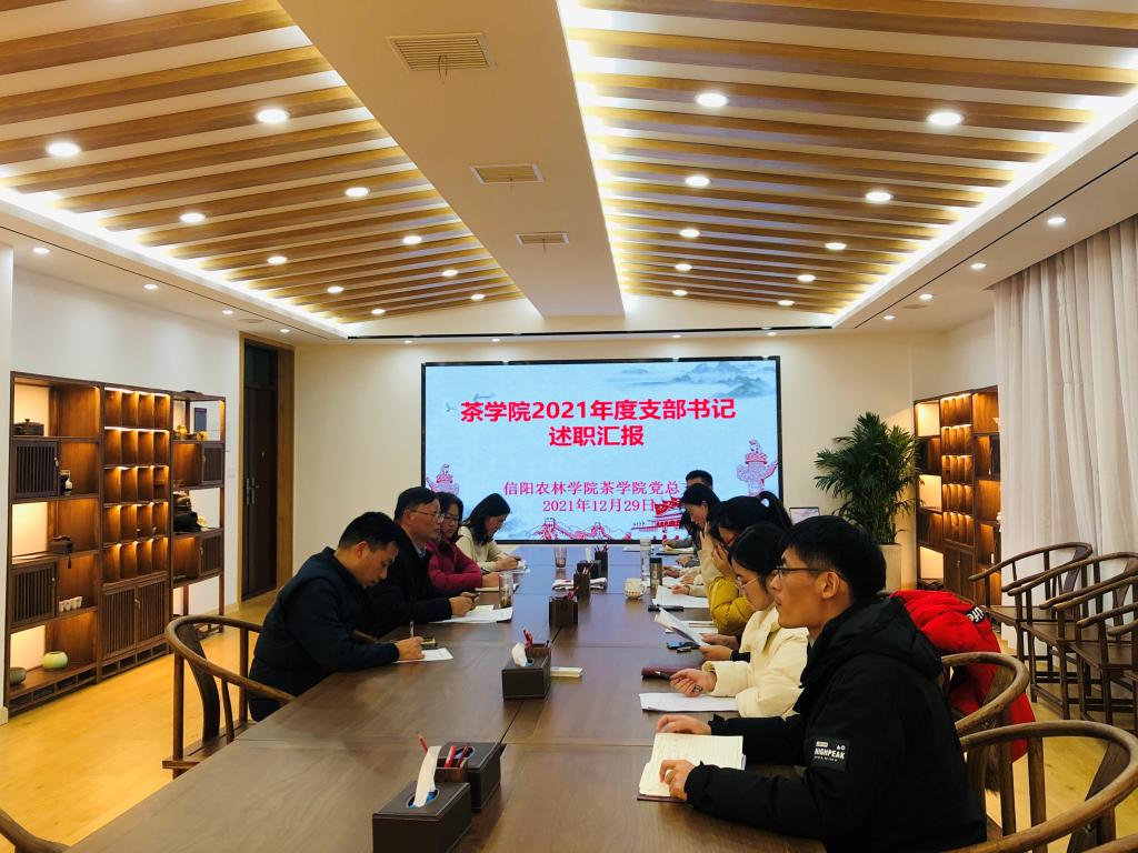 12月30日下午,茶学院党总支在科技楼1C 201召开党支部书记抓党建工作述职汇报会,会议由茶学院党总支副书记朱建梅主持,茶学院党总支委员、各党支部书记、支部委员参加。