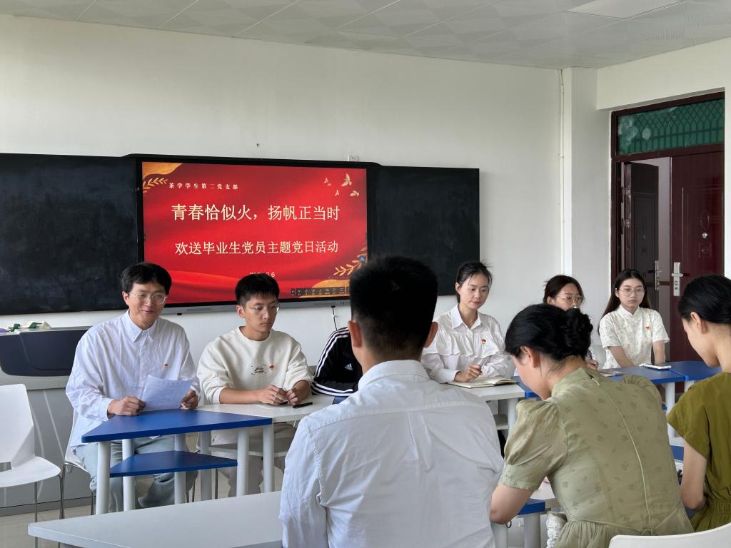 为深入开展学习贯彻习近平新时代中国特色社会主义思想主题教育,进一步加强毕业生党员和支部党员的思想政治教育,提高党性修养,增强组织观念和纪律意识,使党员同志们持续发挥先锋模范作用,6月6日,茶学院茶学学生第二党支部组织开展欢送毕业生党员暨2022-2023学年优秀党员表彰主题党日活动。支部书记梁玉洁及学生党员、积极分子参加活动。