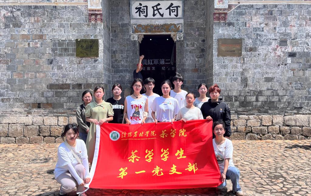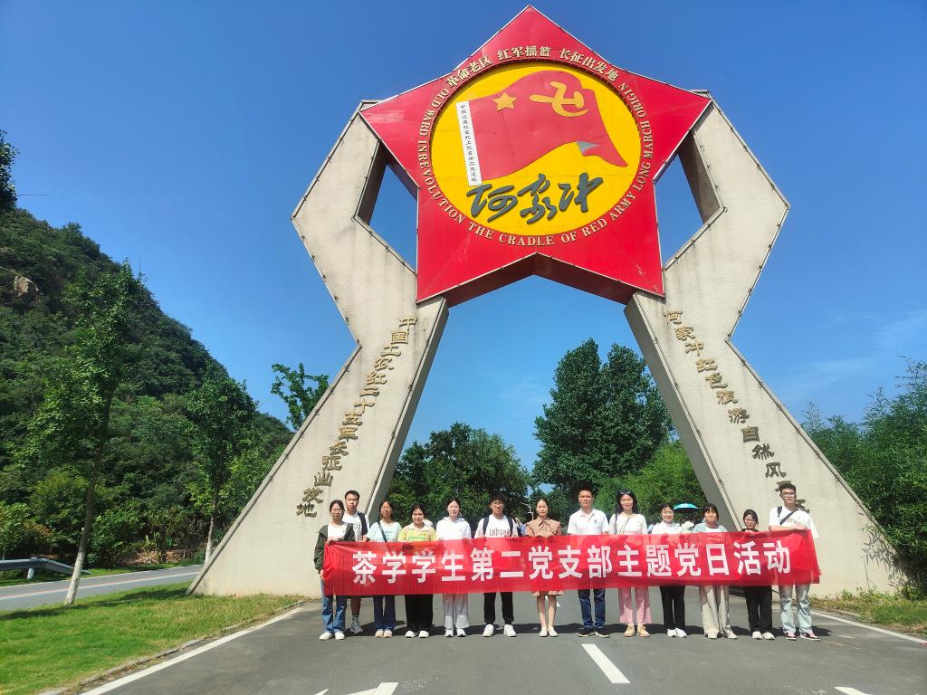 为扎实推进学习贯彻习近平新时代中国特色社会主义思想主题教育走深走实,在“七一”党的生日来临之际,6月30日上午,茶学院学生党支部在红二十五军长征出发地何家冲开展迎“七一”主题党日活动,以此向党的生日献礼,学院专职组织员、茶学学生第一党支部书记丁岚,茶学学生第二党支部书记梁玉洁带领学生党员共20余人参加活动。