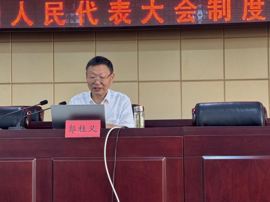 郭桂义教授以《人民代表大会制度》为题,从人民代表大会制度是“两个结合”的重大成果、人民代表大会制度历久弥新、自觉坚持党对人大工作的全面领导、把全过程人民民主重大理念具体地现实地落实到人大工作、人民代表大会制度有关的法律等五个方面对人民代表大会制度进行了宣讲,并介绍了经过省人大常委会议初次审议、还在面向社会各界征求意见的《街道人大工作条例(征求意见稿)》。人民代表大会制度是中国共产党把马克思主义基本原理同中国具体实际相结合、同中华优秀传统文化相结合创立的全新政治制度,具有先进的政治理念、鲜明的中国特色、深厚的文化底蕴,是“两个结合”的重大成果。人民代表大会制度体现了天下为公、天下大同的社会理想,九州共贯、多元一体的大一统传统,民惟邦本、本固邦宁的民本思想,德主刑辅、法明令行的法治精神。人民代表大会制度之所以具有强大生命力和显著优越性,得到广大人民认同和拥护,就是因为它是从中国的社会土壤中生长起来的,吸收了中华优秀传统政治文化的理念、价值、规范。人民代表大会制度是党领导国家政权机关的重要制度载体,也是党在国家政权中充分发扬民主、贯彻群众路线的重要实现形式。作为国家政体,人民代表大会制度的根本任务就是维护人民民主专政的国体,维护党总揽全局、协调各方的领导核心地位,保证党领导人民依法有效治理国家。人大及其常委会依法行使立法、监督、决定、任免等职权,确保党的主张通过法定程序成为国家意志,确保党组织推荐的人选通过法定程序成为国家政权机关的领导人员,确保党通过国家政权机关实施对国家和社会的领导。各国家机关依照宪法法律积极主动、独立负责、协调一致开展工作,既合理分工又密切合作,既充分发扬民主又有效进行集中,在党中央统一指挥下形成合奏,保证国家统一高效组织推进各项事业。