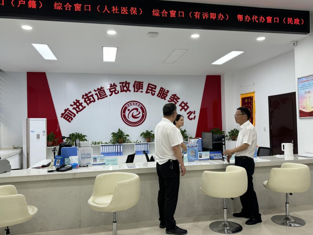 郭桂义教授实地考察了前进街道办事处公共法律服务工作站、党政便民服务中心、前进街道社会治理室,并与工作人员交流,了解工作内容,对切实可行的便民措施、认真细致的工作态度给予肯定。在人大代表联络站,就如何发挥人大代表联络站工作职能与羊山新区党委副书记刘海霞、羊山新区人大政协联络办公室主任杨凯、街道党工委书记张少莹,街道党工委副书记、主任杨俊超,街道党工委副书记余开广,街道党工委委员、人大工委主任张立森等进行了交流座谈。
