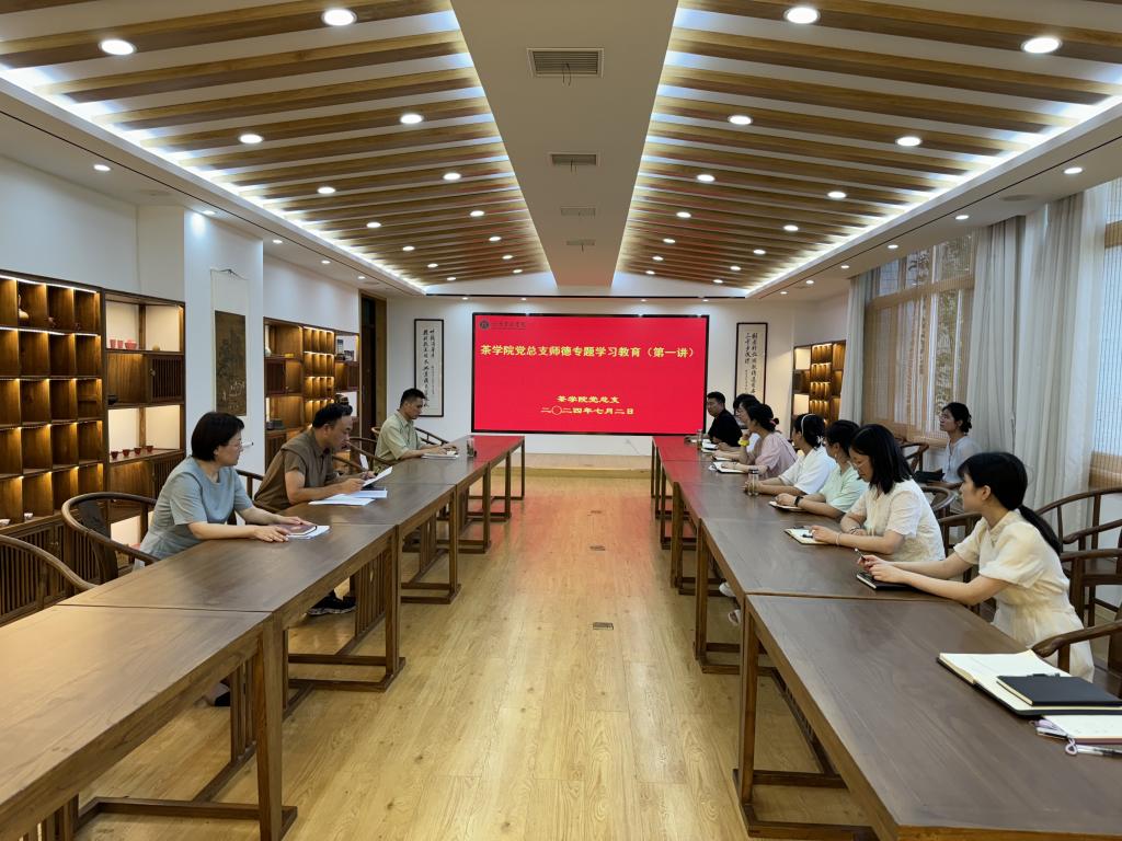 为深入贯彻落实党的二十大精神,进一步加强和改进新时代师德师风建设,根据学校要求,7月2日下午,茶学院党总支于科技楼1C201开展师德专题学习教育第一讲)。