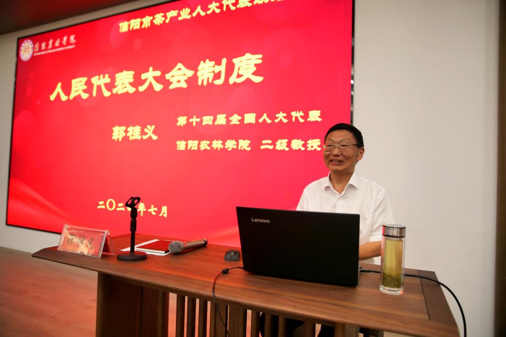 全国人大代表郭桂义教授参加信阳市茶产业人大代表联络站成立暨茶产业发展座谈会并做宣讲