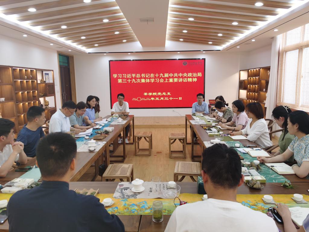 茶学院党总支集中学习习近平总书记在十九届中共中央政治局第三十九次集体学习会上重要讲话精神