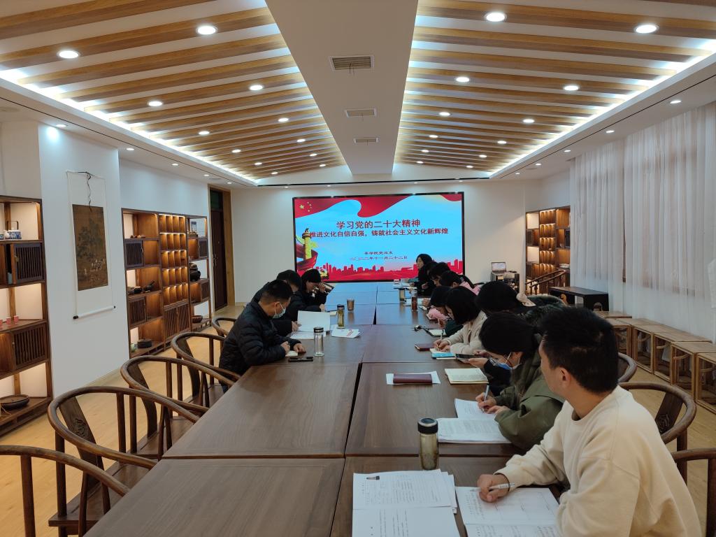 郭桂义强调:文化自信自强体现了中华优秀传统文化所具有的深沉、强大的力量,中国特色社会主义的文化自信是马克思主义基本原理同中华优秀传统文化相结合形成的精神力量。茶文化作为中华优秀传统文化的重要内容,担负着中华优秀文化传承与创新发展的重要任务,我院应通过茶文化的传播,突显文化自信,引导茶学院高质量发展;要认真组织学习深刻领会党的二十大精神,以弘扬中华优秀传统文化为己任,坚定文化自信、增强文化自觉。(撰稿人:丁岚 审核人:朱建梅)