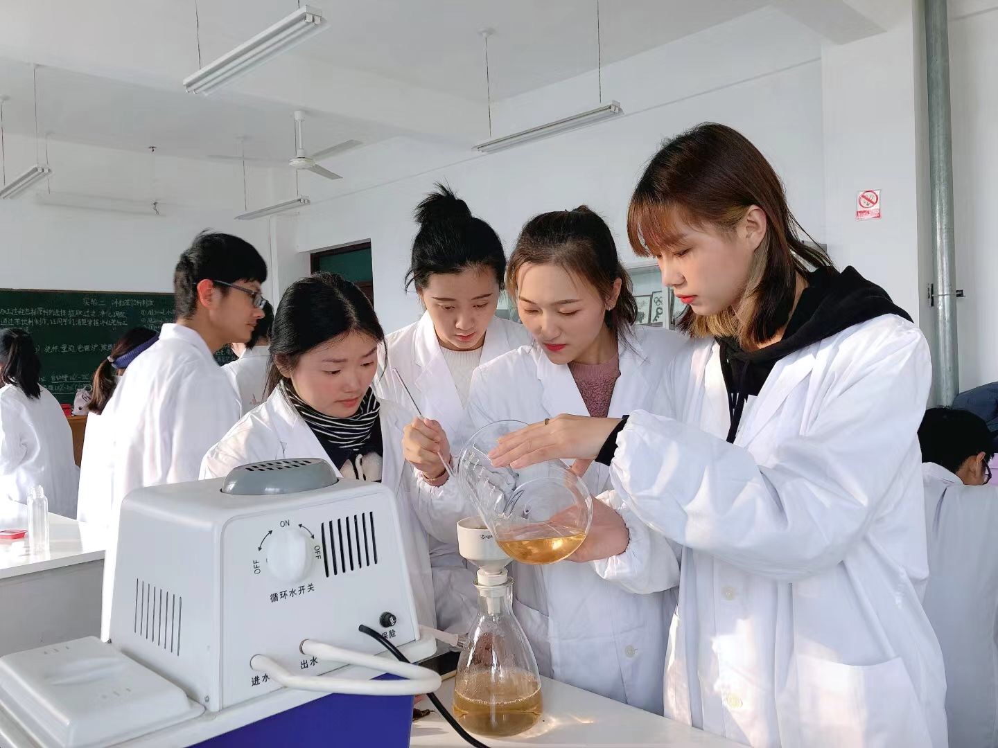 茶学院近期由于多门课程需要开展实验教学,但实验室较少、不够使用,茶学院积极想办法,利用周末在1C203开展冰红茶饮料制作实验教学,以此来克服实验室较少、不够使用的问题,以“时间”换“空间”,提高实验室利用率,提高实验教学质量,学院督导组对此次实验课进行了教学督导。