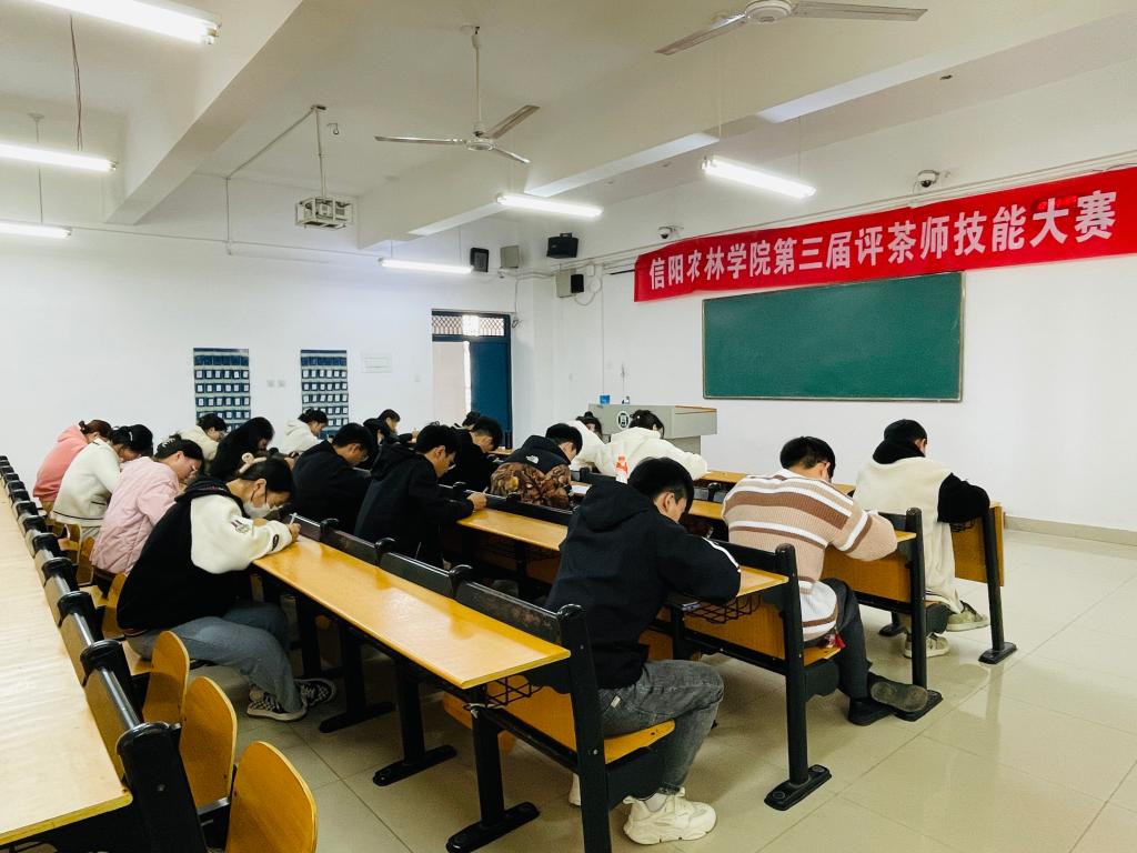 为深入贯彻落实习近平总书记对技能人才工作的重要指示精神,高质量推进“人人持证、技能河南” “人人持证、技能信阳”建设,建立完善学生职业技能竞赛体系。beat365在线平台官网于1121日、26日举办了第八届茶文化节重要活动之一beat365在线平台官网第三届评茶师技能大赛。大赛由茶学院主办,茶文化与营销教研室、茶学教研室、茶学实验教学中心、郭桂义国家级技能大师工作室承办。茶学院党总支书记、院长、国家级技能大师工作室领办人郭桂义教授担任大赛专家组组长,茶学院朱尧、王杉、苏丹、王晶晶四位老师担任裁判,大赛由朱尧、苏丹两位老师具体组织实施。