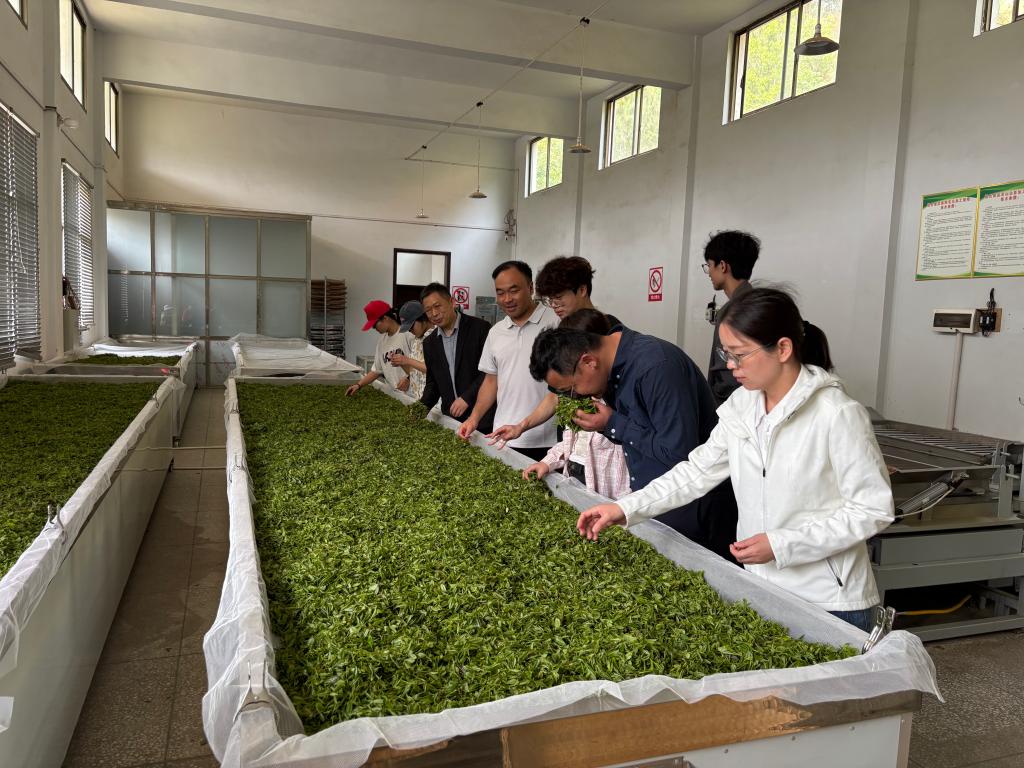 419日,茶学院党委书记王鹏带领教学副院长尹鹏以及22级实习学生辅导员张向娜先后前往光山县兰亭林茶专业合作社、河南赛山悟道生态茶业科技有限公司、光山县净居寺茶场和河南省筑巢生态农业有限公司四家企业检查茶学22级学生实习情况。
