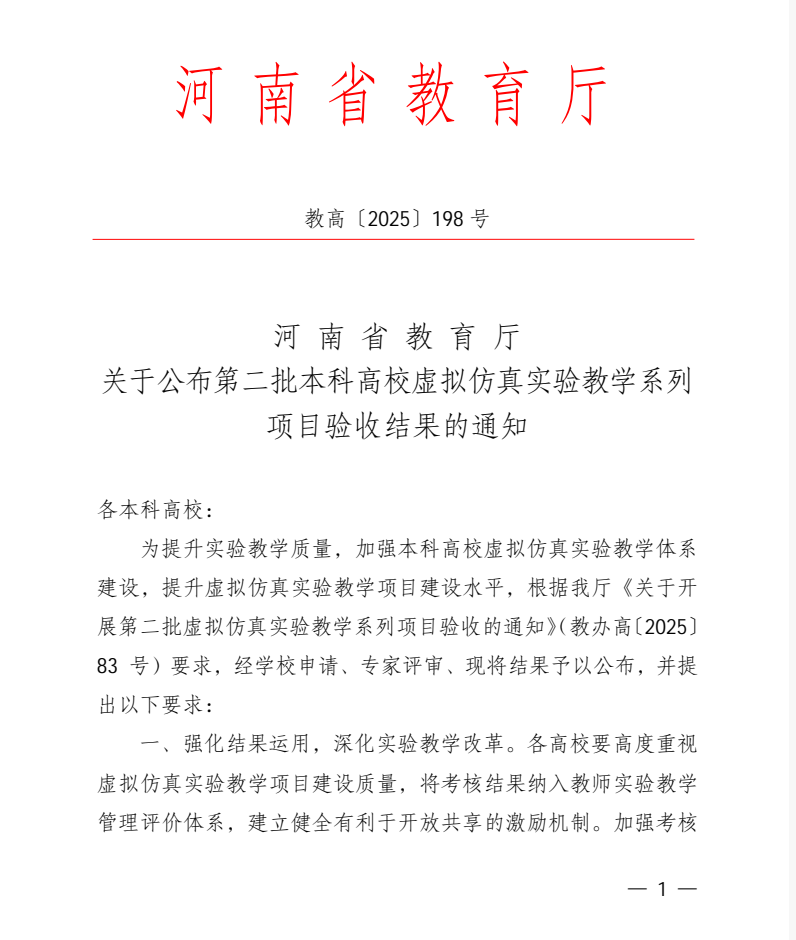 为提升实验教学质量,加强本科高校虚拟仿真实验教学体系建设,提升虚拟仿真实验教学项目建设水平,河南省教育厅开展了第二批虚拟仿真实验教学系列项目验收工作,经学校申请、专家评审,日前发文(教高〔2025198 )公布了验收结果,茶学院二级教授郭桂义任负责人的“茶学虚拟仿真课程群”验收合格(分“合格”“基本合格”);王广铭任负责人的“绿茶智能化加工虚拟仿真项目”验收优秀(分“优秀”“合格”“基本合格”“撤项”),孙慕芳任负责人的“茶叶感官审评方法及茶汤滋味形成虚拟仿真实验教学项目”和刘佳任负责人的“茶席茶空间设计虚拟仿真项目”验收合格;另,以“茶学虚拟仿真课程群”作为联合高校参加的“河南省植物学虚拟仿真实验教学中心”验收合格(分“合格”“基本合格”)。(撰稿/义茗  审核/尹鹏  终审/孙慕芳)