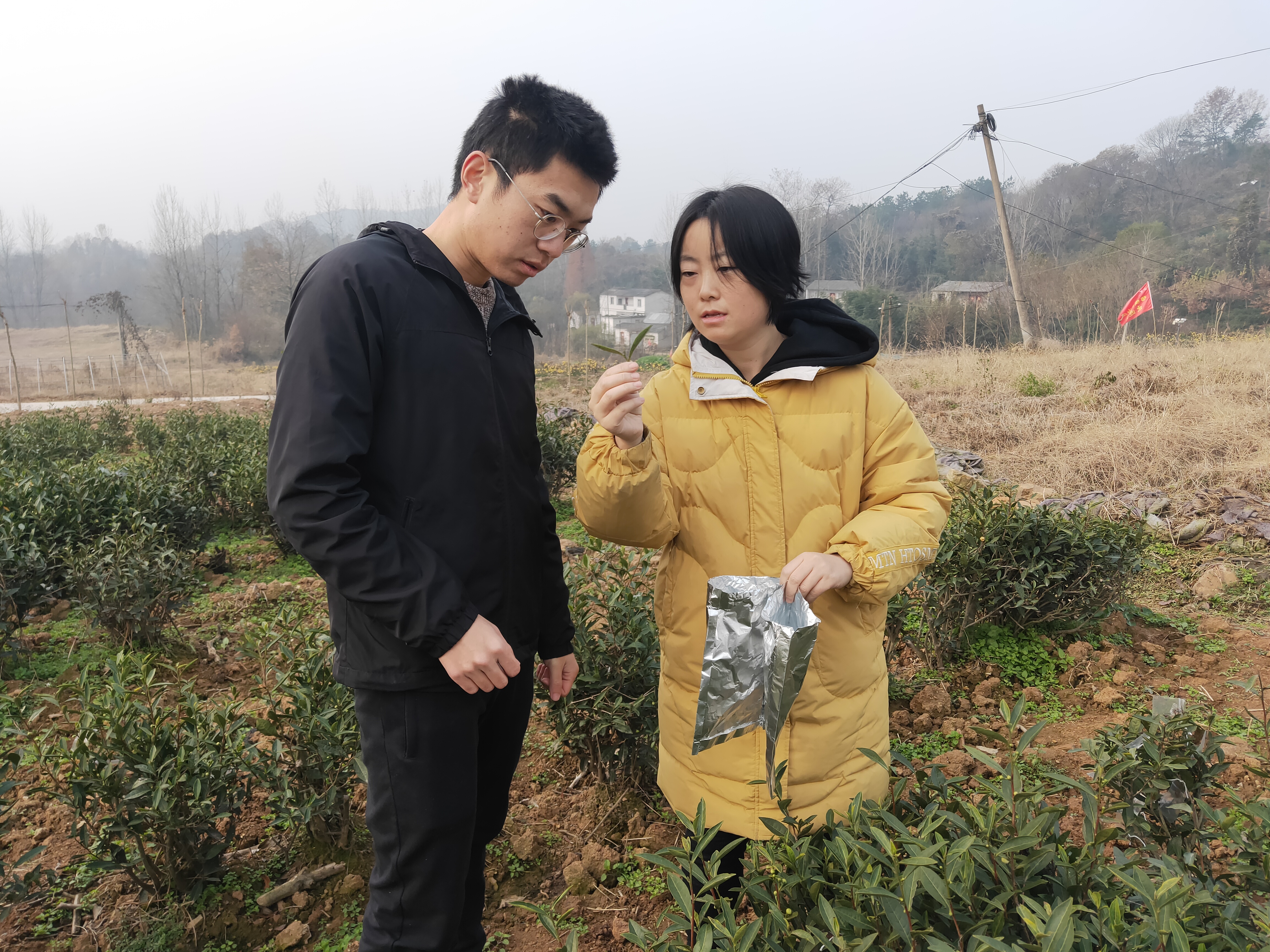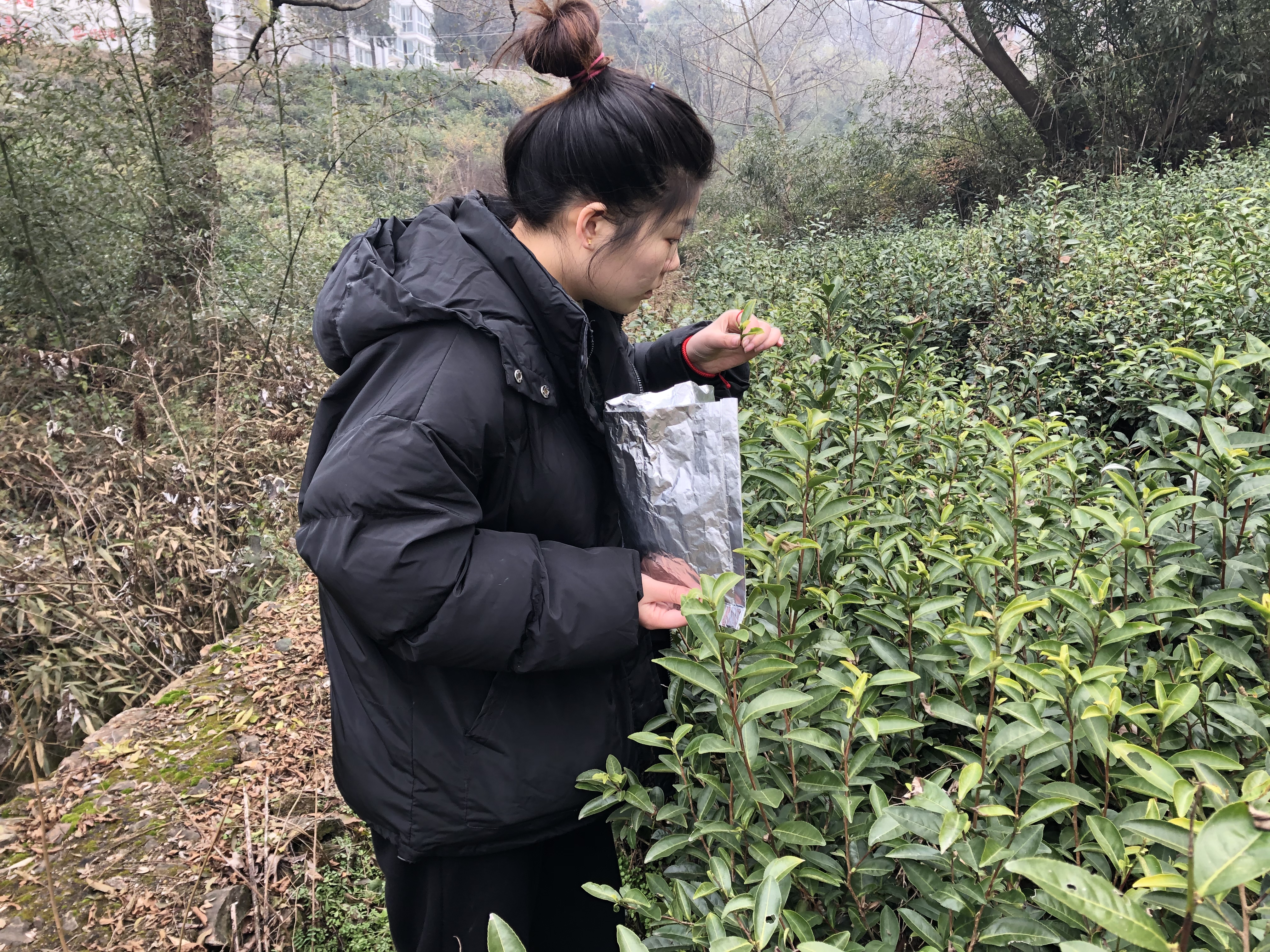 12月08日,茶学院青年教师罗金蕾博士带领3名学生到震雷山茶叶试验站采集茶树叶片样品,本次样品采集目的是为学生毕业设计做准备。