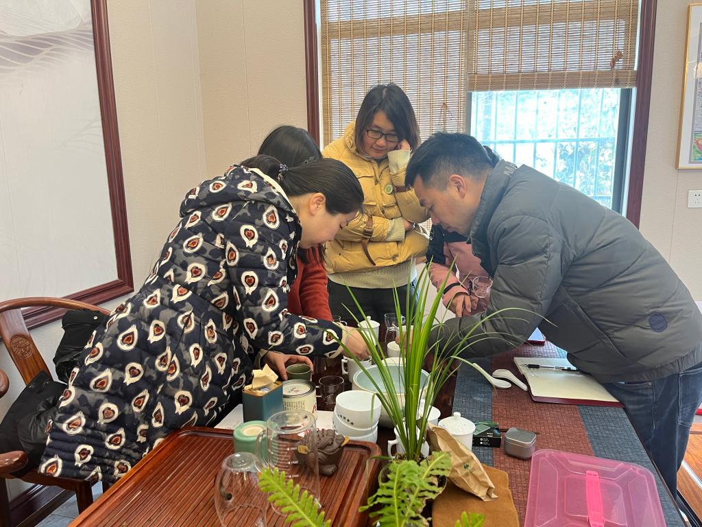 下午,服务队继续走访朱堂乡严家山(家庭)农场和尚林家庭农场,对企业茶样进行审评。在茶园和茶叶生产车间,服务队与企业负责人进行了交流,了解企业需求,就即将到来的春茶生产季实习生需求进行了洽谈。