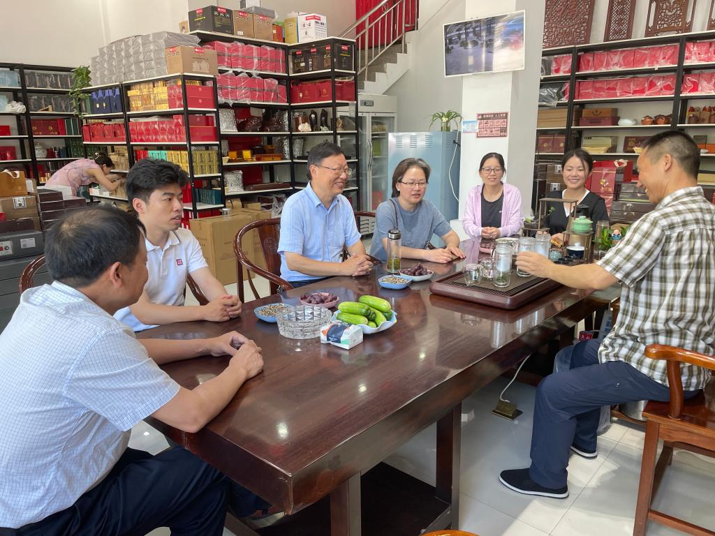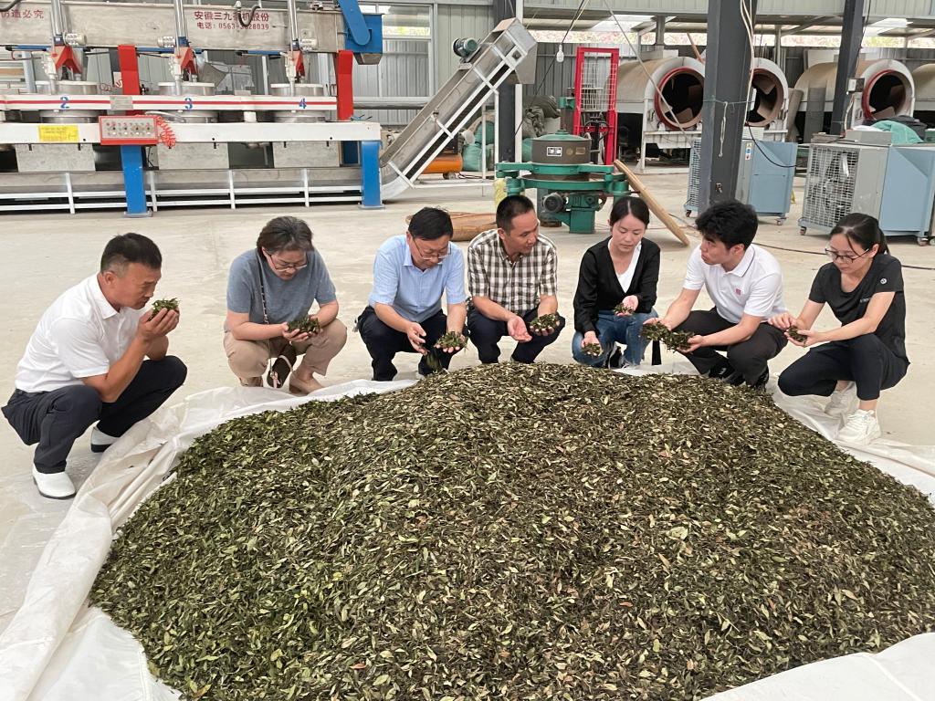 根据“十四五”国家重点研发计划项目“茶产业关键技术研究与应用示范”(2021YFD1601100)中“课题三”-“大别山区茶叶提质增效技术集成与应用示范”项目的任务要求,针对河南地区信阳毛尖加工示范、夏秋茶资源的开发利用问题,开展了大别山区茶叶提升改造技术研究。2022年7月3日,任务负责人beat365在线平台官网茶学院院长郭桂义教授带队,与任务成员孙慕芳、朱尧、苏丹、张向娜一行来到商城县落实课题试验任务。