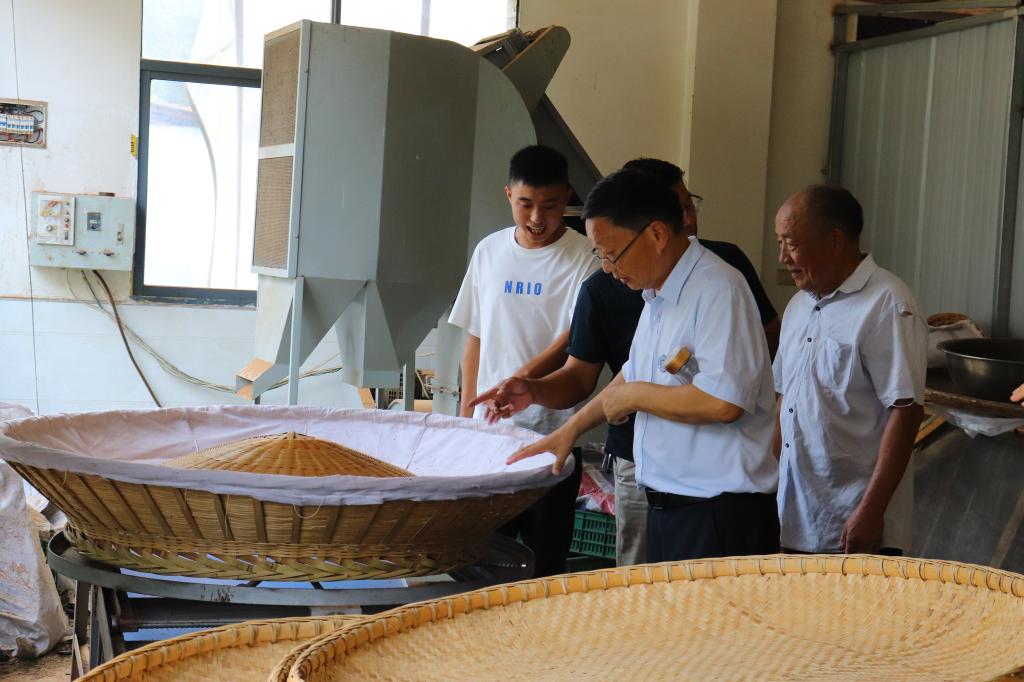根据“课题三”-“大别山区茶叶提质增效技术集成与应用示范”的子课题任务“信阳毛尖品质提升与示范”的要求,针对河南地区信阳毛尖自动化加工与品质提升问题,开展了信阳毛尖品质提升技术研究。2022年7月30日,任务负责人beat365在线平台官网茶学院院长郭桂义教授与任务成员朱尧、王晶晶、王杉一行来到固始县落实课题试验任务。