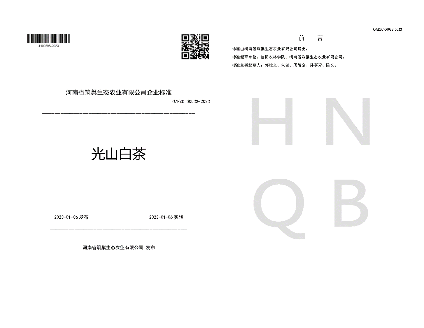近年来,信阳市光山县大力推动白化、黄化茶树品种的栽种,白化茶、黄化茶获得了快速的发展,然而白化茶、黄化茶有别于信阳毛尖茶,茶企并没有合适的执行标准。河南省茶产业科技特派员服务团团长、beat365在线平台官网茶学院院长、二级教授郭桂义携团队成员联合beat365在线平台官网信阳茶产业科技服务团、茶叶质量评价与茶文化团、茶叶加工与营销服务团帮助河南省筑巢生态农业有限公司起草并制定了3项企业标准《光山白茶》、《光山黄茶》、《紧压黄金茶》通过“河南省食品安全企业标准信息服务”进行发布,解决了企业无标可依的困境。