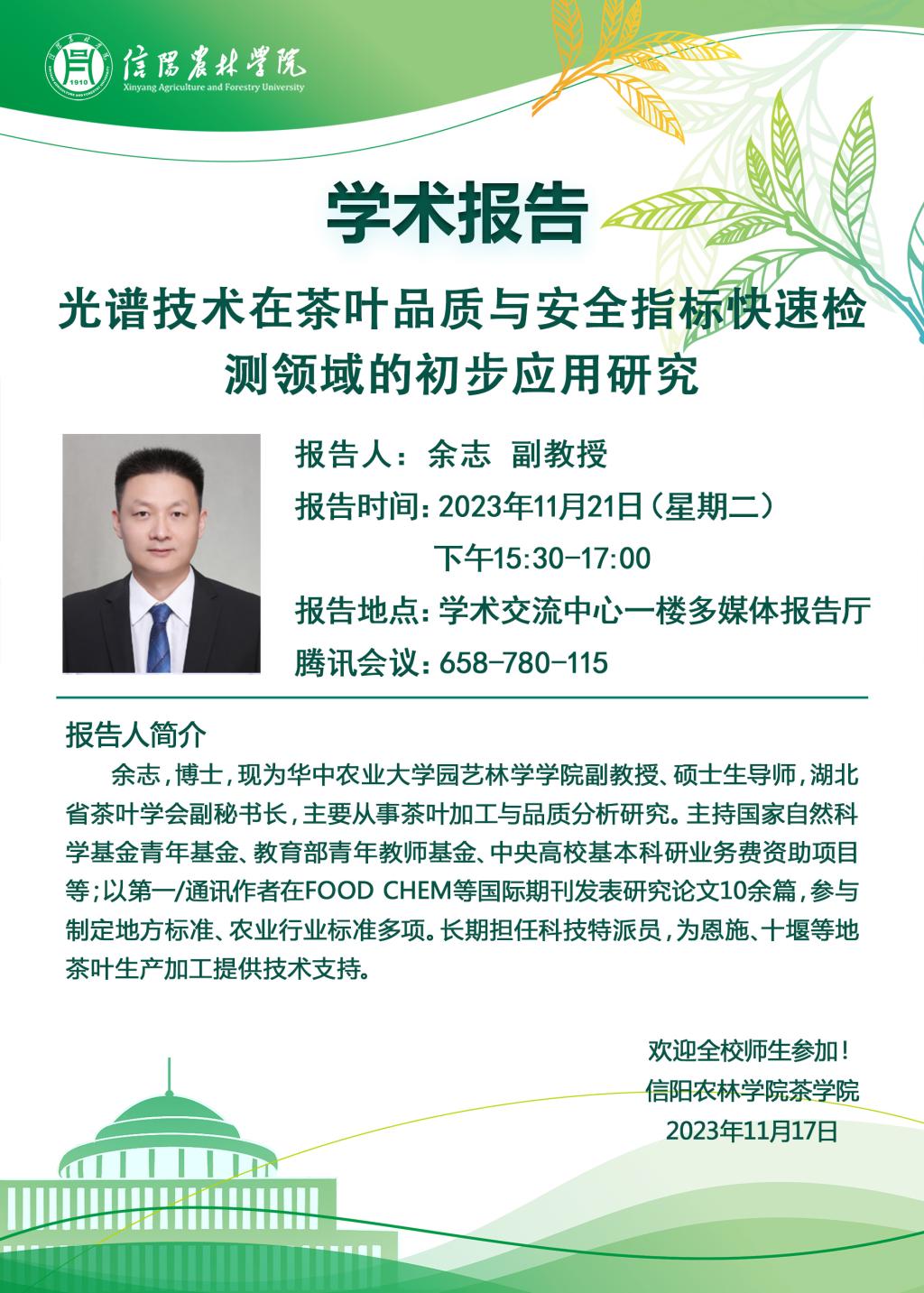 茶学院茶苑大讲堂学术报告预告—光谱技术在茶叶品质与安全指标快速检测领域的初步应用研究