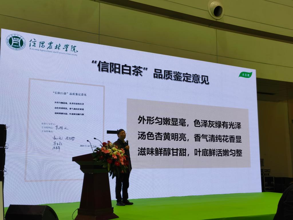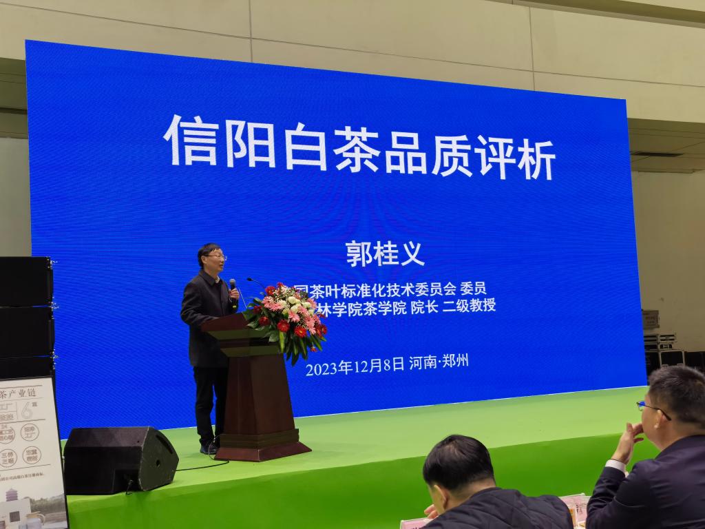 会议期间,12月7日下午,信阳市茶产业发展中心和信阳市茶叶协会共同举办了信阳白茶品鉴会,全国茶叶标准化技术委员会委员、茶学院院长、二级教授郭桂义应邀参加并担任专家组组长,通过专业审评和对比,确定了信阳地区白茶总的品质特征和不同等级品质要求。
