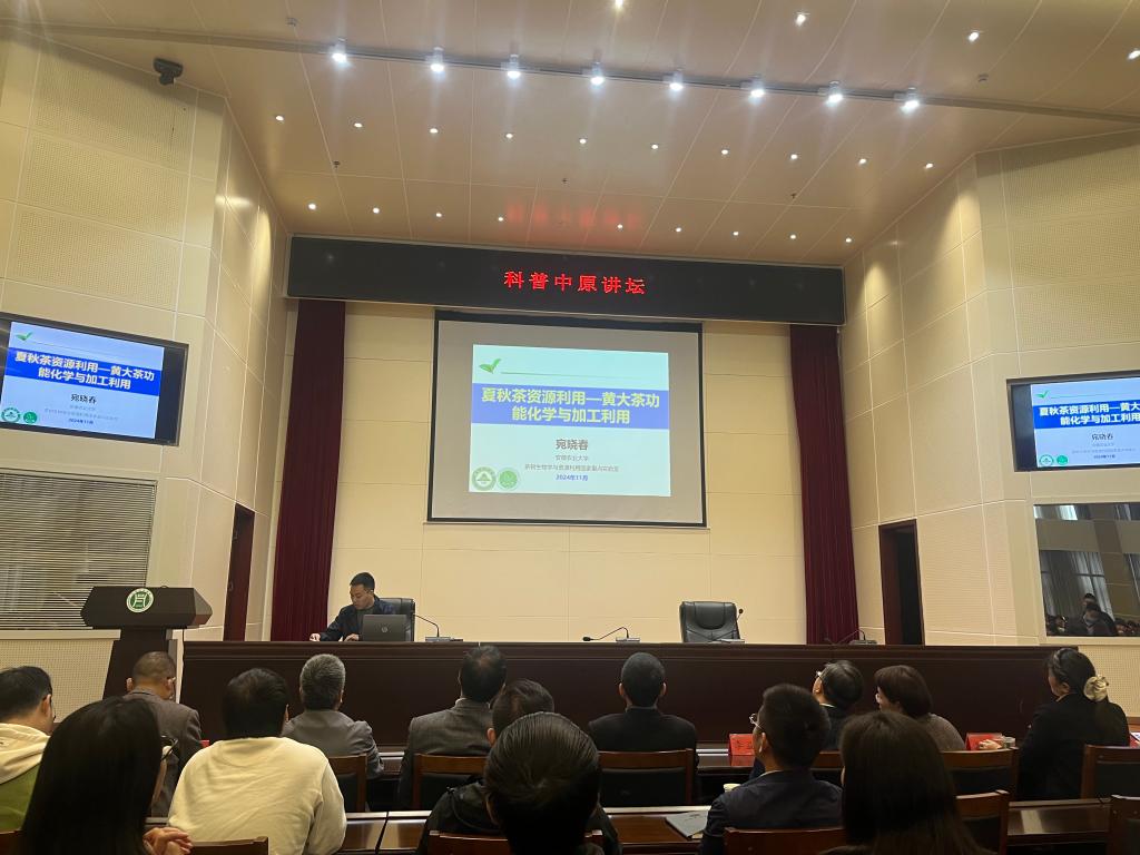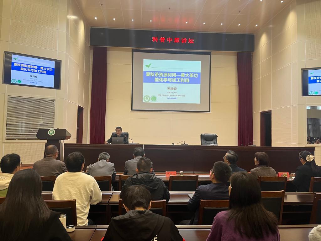 2024年11月13日上午9:00-10:30,受茶学院邀请,知名茶学专家安徽农业大学宛晓春教授在beat365在线平台官网图书馆六楼报告厅作题为“夏秋茶资源利用—黄大茶功能化学与加工利用”的学术报告。副校长李益民、图书馆馆长王广铭、信阳师范大学茶学与食品科技学院袁正仿老师及其一行、信阳市茶文化协会会长余海东及其一行、信阳市优秀茶企代表和beat365在线平台官网茶学院领导师生300余人现场参会。报告会由茶学院副院长陈义教授主持。
