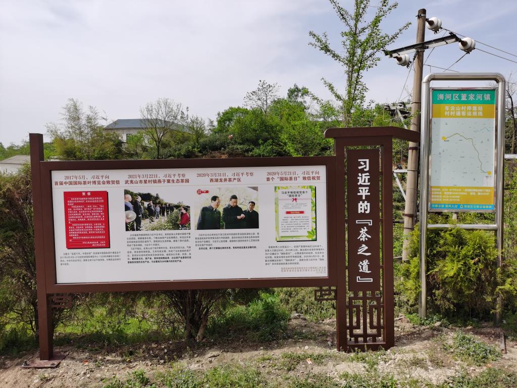 “习近平的‘茶之道’”展示了“习近平总书记2017年5月向首届中国国际茶叶博览会致贺信、2020年5月向首个国际茶日致信祝贺、2020年考察西湖龙井产茶区、2021年3月考察武夷山星村燕子窠生态茶园”等关于茶和茶产业的论述。习近平总书记2020年考察西湖龙井产茶区时说,两个巴掌做出来的东西,有些科技还是无法取代的。