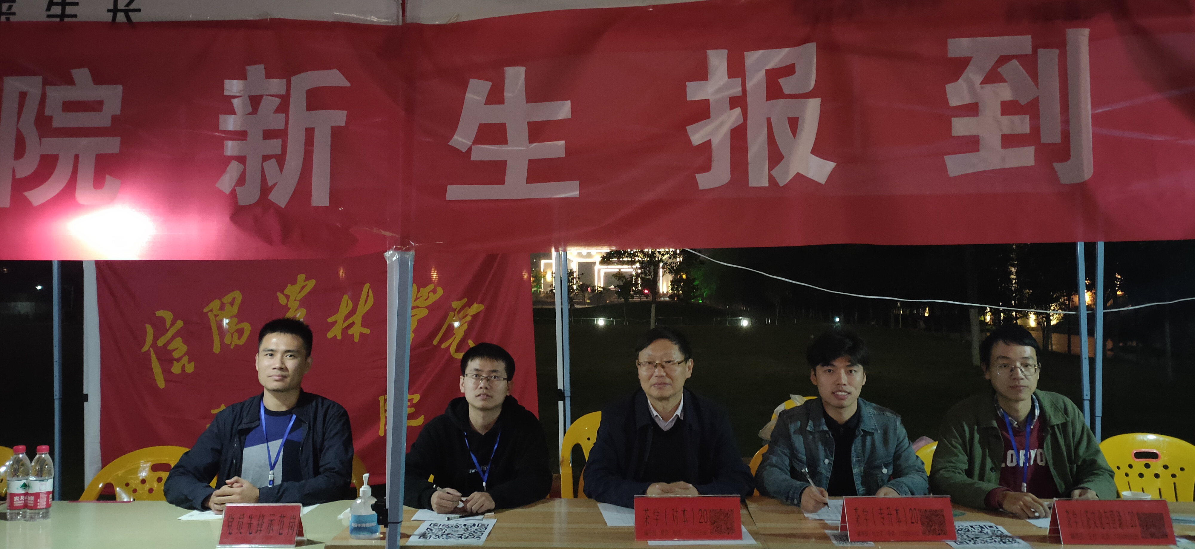 为做好迎新工作,我院的王杉、夏雨、朱尧和杜之正四位新生辅导员一直忙碌在迎新一线 。深夜,郭院长和团总支书记王子浩老师也一起守在迎新服务点,与茶院志愿者们一起迎接新生。