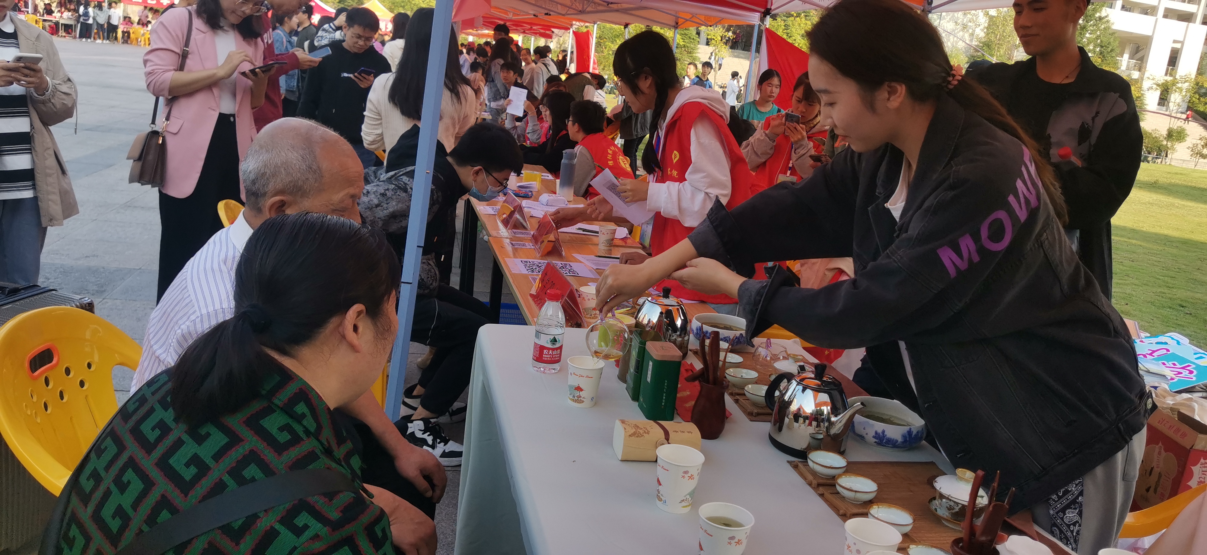 迎新现场,我们一如既往地摆放了茶台,为前来送孩子的家长泡上一杯茶,品味信阳的茶香,也放松放松身心。