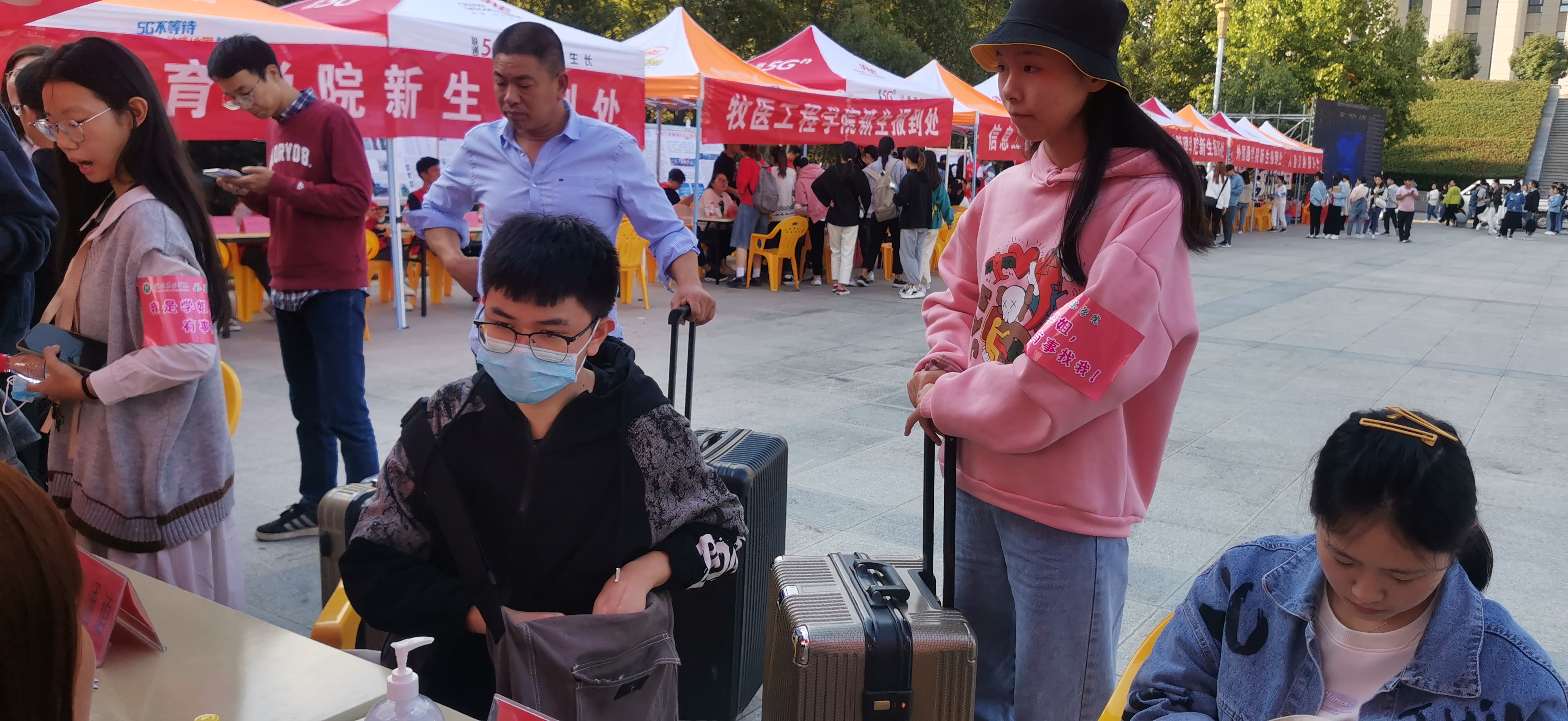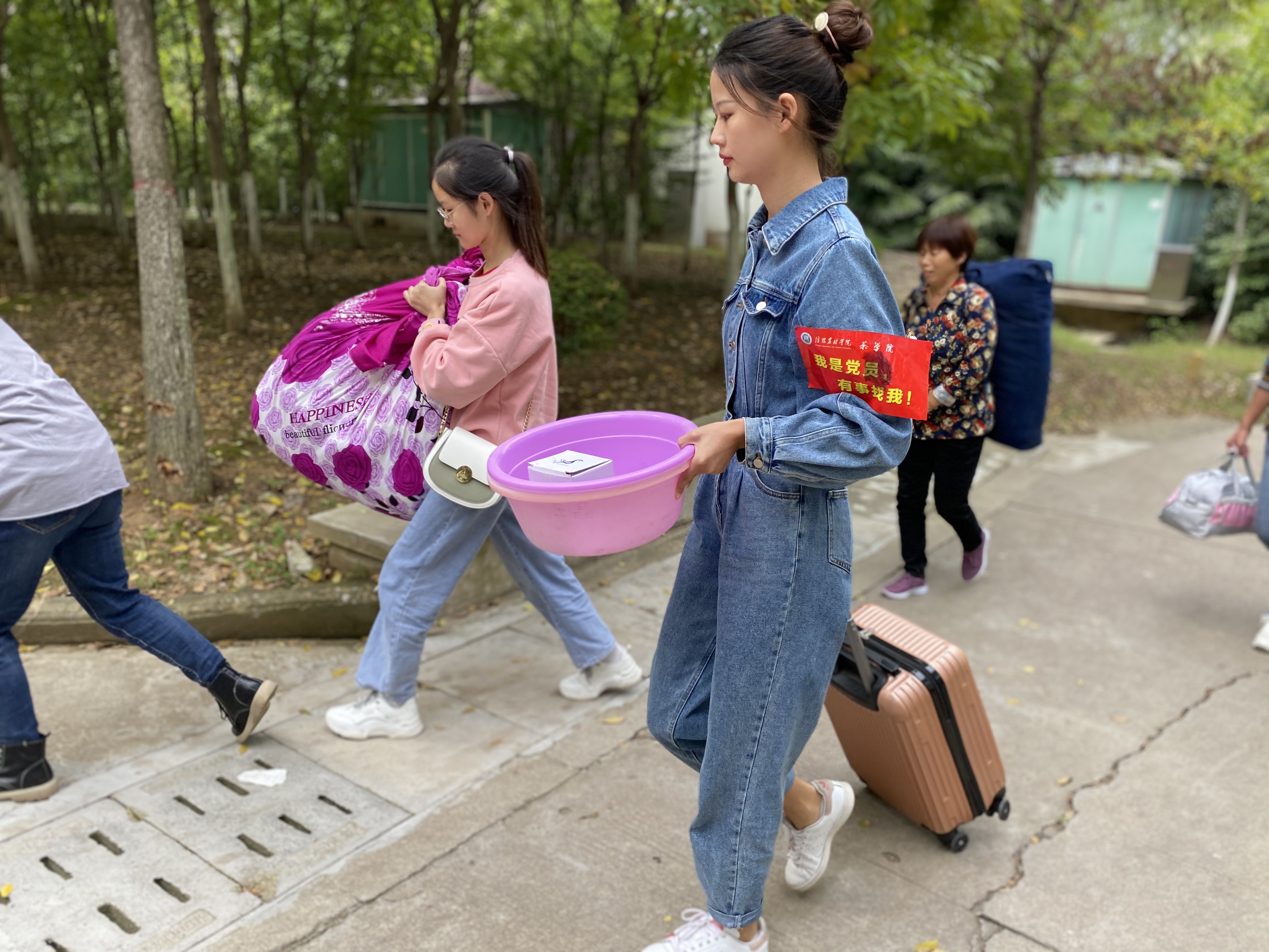 茶学院迎新队伍中还有一群这样的学生,他们胳膊上贴着“我是党员,有事找我”。从10月9日,新生提前报道,我们的党员同志们就提前到岗,为新生提供服务,充分体现了哪里有需求哪里有党员的先锋性。