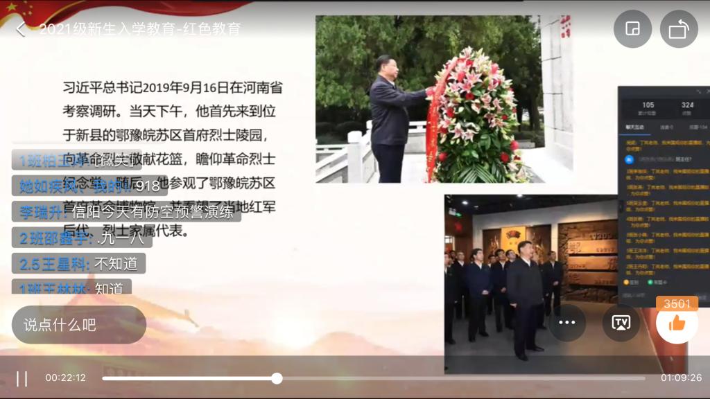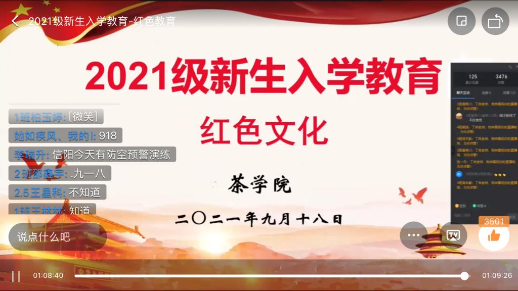 为了让2021级新生更好的了解信阳红色文化和大别山精神,茶学院于9月18日上午通过钉钉在线直播开展了新生入学教育之红色文化教育。