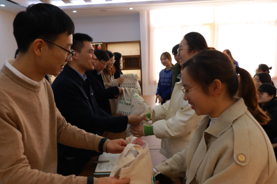 学院为同学们准备了“考研福袋”,里面配有考试必备文具,补充能量的水果、食品等,每一份物品都经过辅导员老师的精心挑选,包含着对学生的关怀和祝福。同学们接过福袋,很受感动和鼓舞,表示会继续努力,发挥潜能。最后师生们合影留念,齐声祝福考试加油!(撰稿人:梁玉洁 杜之正,审核人:王子浩)