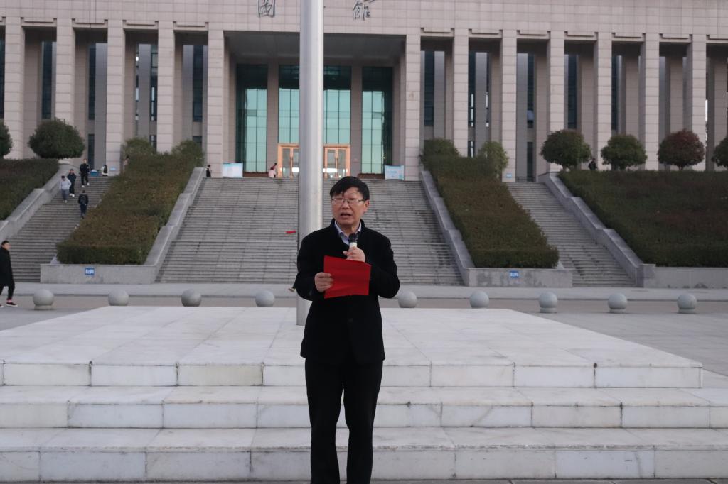 12月6日,茶学院在汝宁广场举行“关爱与期许  习近平总书记与大学生面对面”主题升旗仪式,和老师们、同学们一起重温习近平总书记与大学生的温暖瞬间。茶学院院长、党总支书记郭桂义,21级辅导员王晶晶、孔亚帅,全体21级学生及部分学生干部参加仪式,仪式由团总支书记王子浩主持。