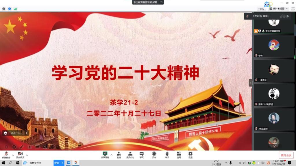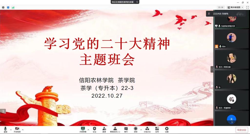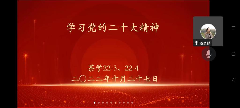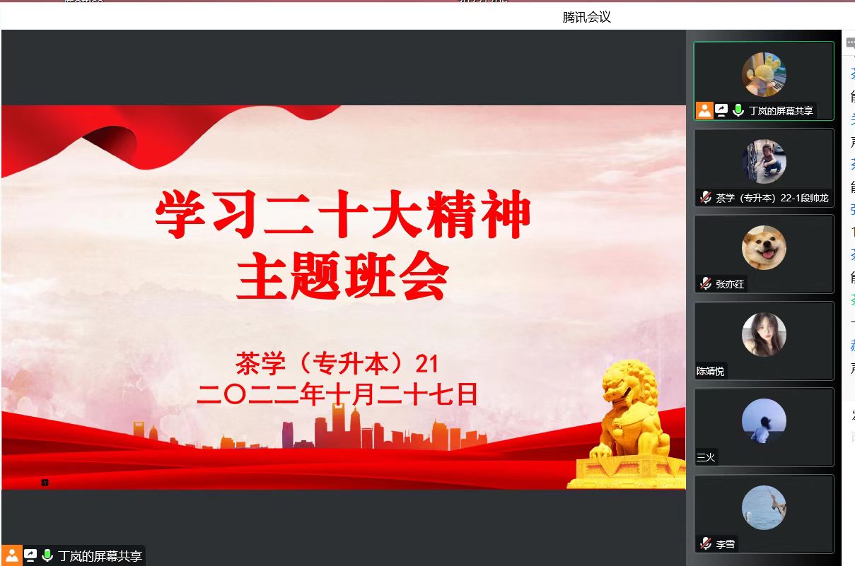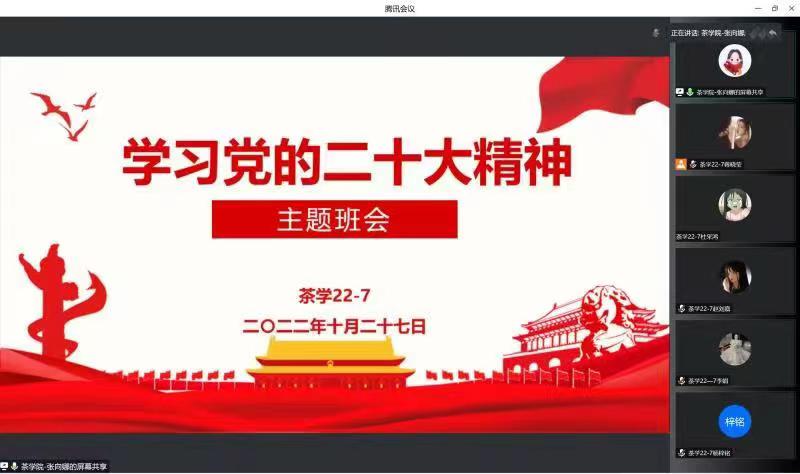 10月16日-22日,中国共产党第二十次全国代表大会盛大召开,学习宣传贯彻党的二十大精神是当前和今后一个时期全党全国的首要政治任务。为进一步学习贯彻党的二十大精神,在同学们当中掀起学习党的二十大精神的热潮,近日,茶学院各班召开学习党的二十大精神主题班会,班会由各班辅导员主持召开。