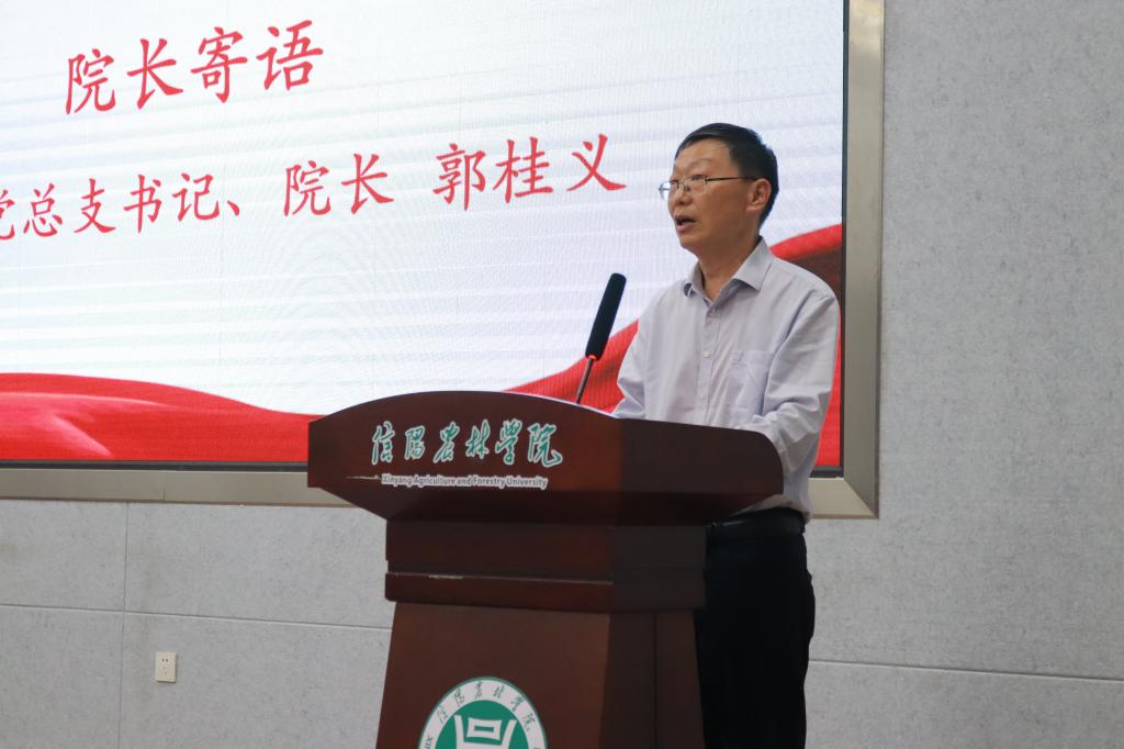 郭桂义对大会进行致辞,他首先对45位同学表示衷心的祝贺及美好的祝愿,希望他们以此为起点,在人生新的征程中,树立积极进取的价值观,为自己、为家庭奋发图强、为母校增光添彩、为国家民族复兴贡献自己的绵薄之力。无论走到哪里,走得多远,希望永远记得母校,记得自己是信农茶学院的一份子,更希望通过他们将信农茶香传播的更远、更香。同时鼓励2024届考研同学们从今天开始,在未来的六个月里,厚积薄发,努力拼搏,希望大家牢记习近平总书记嘱托,拿出不畏严寒的毅力,以最饱满的热情和最饱满的斗志,争取考研胜利,实现人生的跨越!并代表茶学院全体老师,祝愿所有同学不负韶华,心想事成,勇创茶学院新的辉煌!